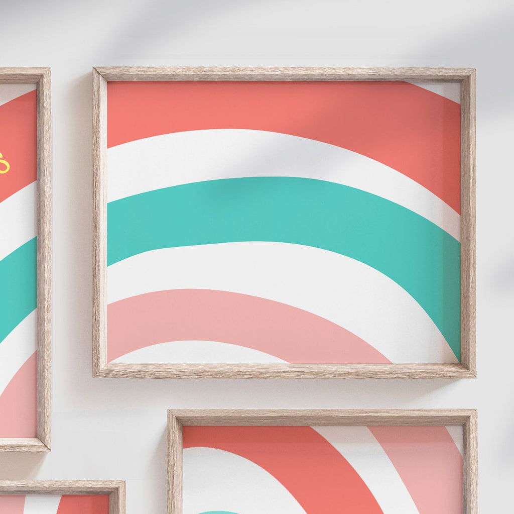 I take pride in creating all of my designs. These contemporary rainbow theme wall art prints will redefine the walls of a girl's nursery, playroom or bedroom. Each design is curated with a passion and vision to create inspired spaces for you and your little ones.