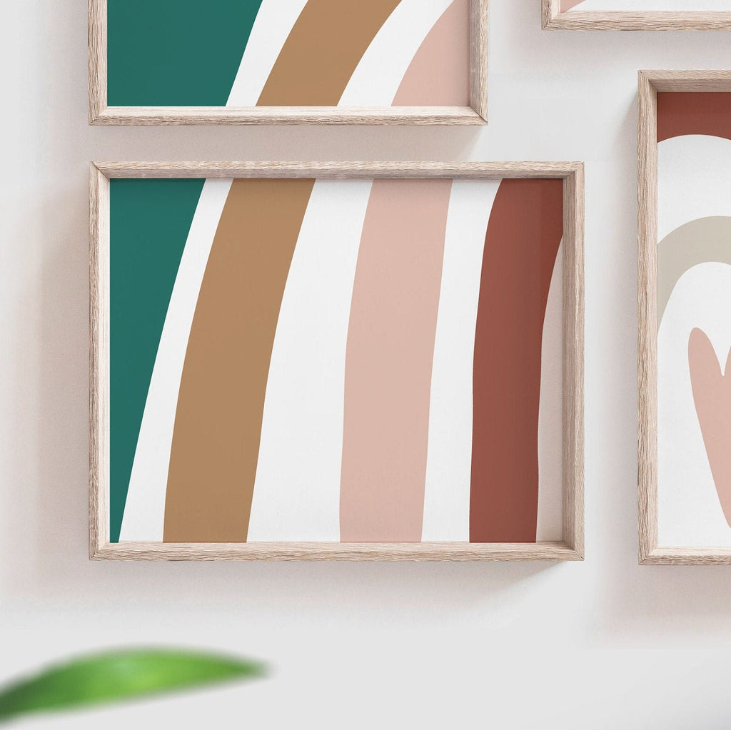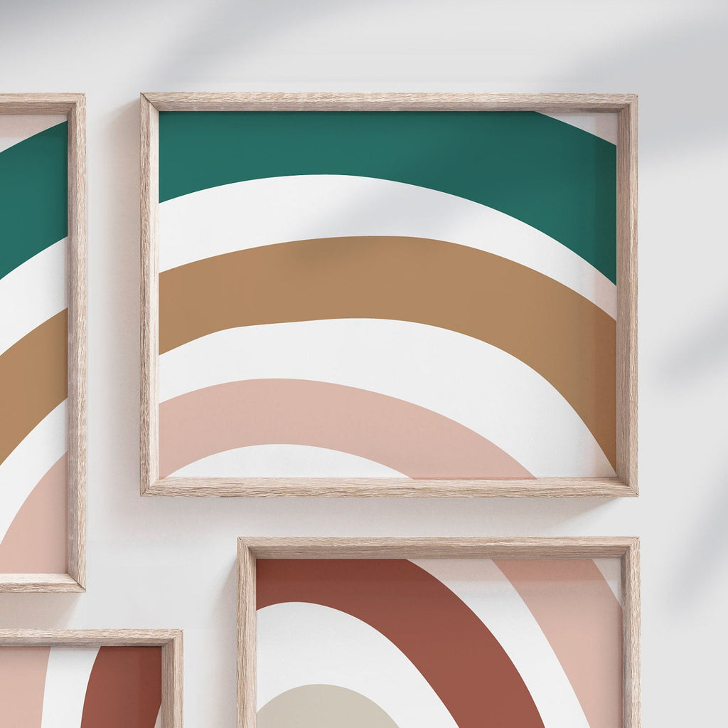 I take pride in creating all of my designs. These contemporary rainbow theme wall art prints will redefine the walls of a girl's nursery, playroom or bedroom. Each design is curated with a passion and vision to create inspired spaces for you and your little ones.