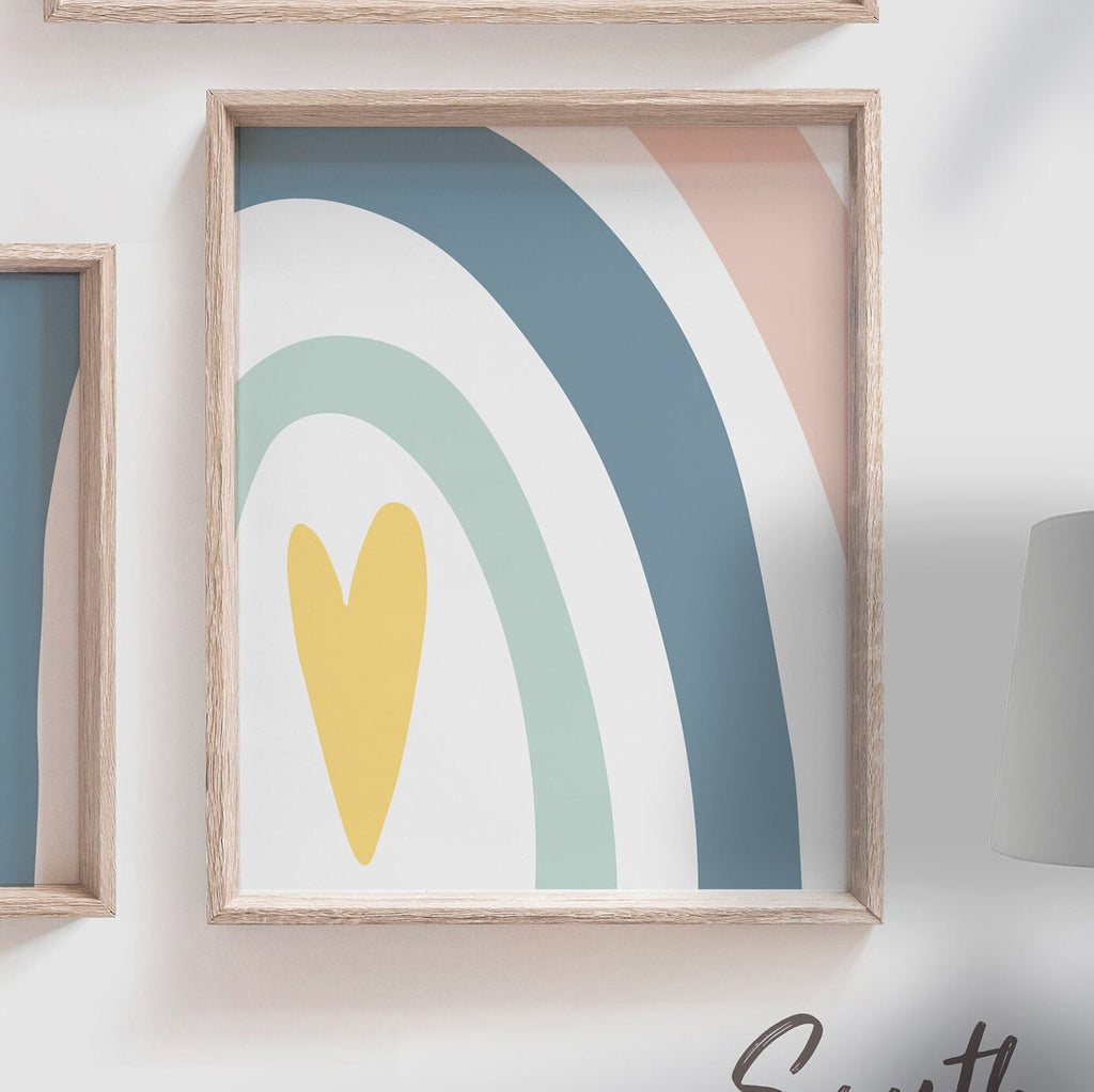 I take pride in creating all of my designs. These contemporary rainbow theme wall art prints will redefine the walls of a girl's nursery, playroom or bedroom. Each design is curated with a passion and vision to create inspired spaces for you and your little ones.