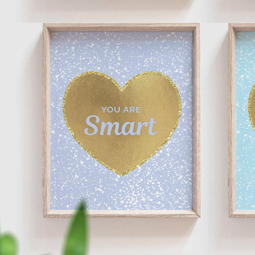 Inspirational wall art, motivational wall decor, affirmation prints, you are smart, brave, kind, loved, strong, unique, print collection kid
