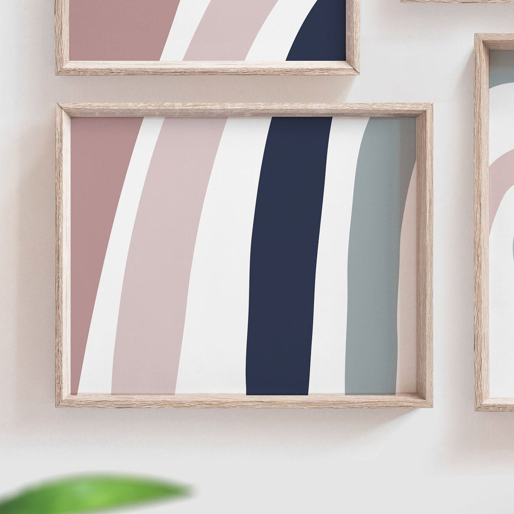 Navy and blush nursery, children rainbow wall, blush pink and navy blue rainbow kids baby children, art gender neutral blue gray nude mauve