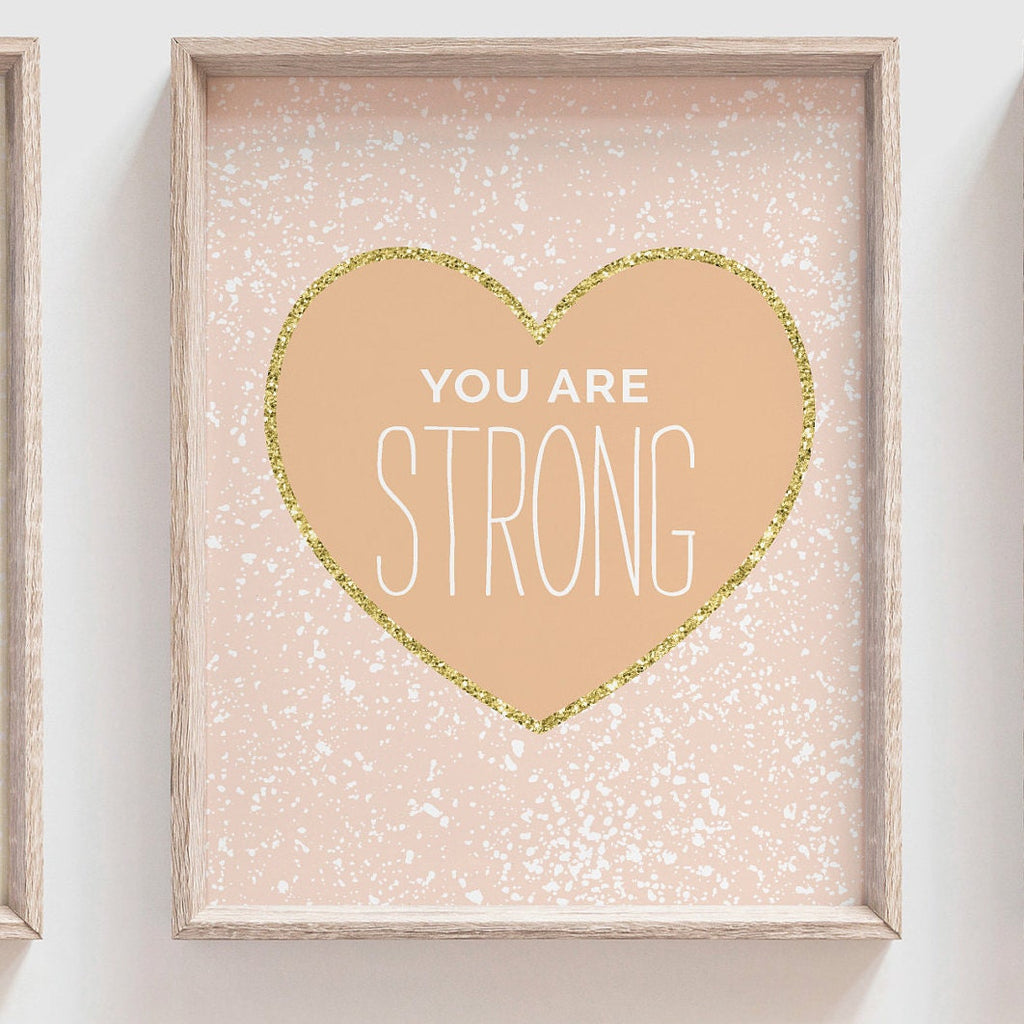 Product description: Inspirational themed prints featuring ink splatters and gold sparkle rings with inspirational quotes reading, "You are kind. You are brave. You are strong. You are loved. You are unique." Other options are also available in my shop. Other options are also available in my shop.