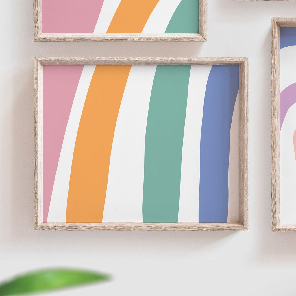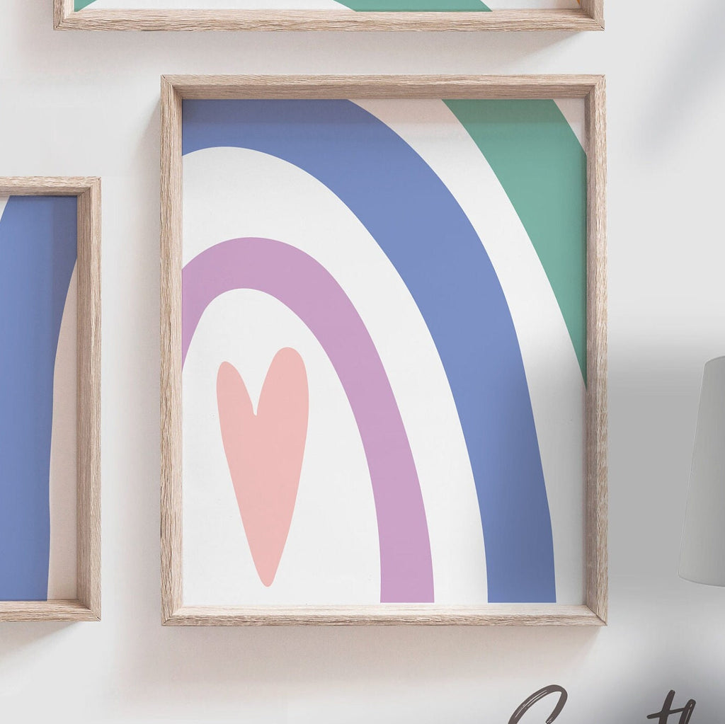 I take pride in creating all of my designs. These contemporary rainbow theme wall art prints will redefine the walls of a girl's nursery, playroom or bedroom. Each design is curated with a passion and vision to create inspired spaces for you and your little ones.