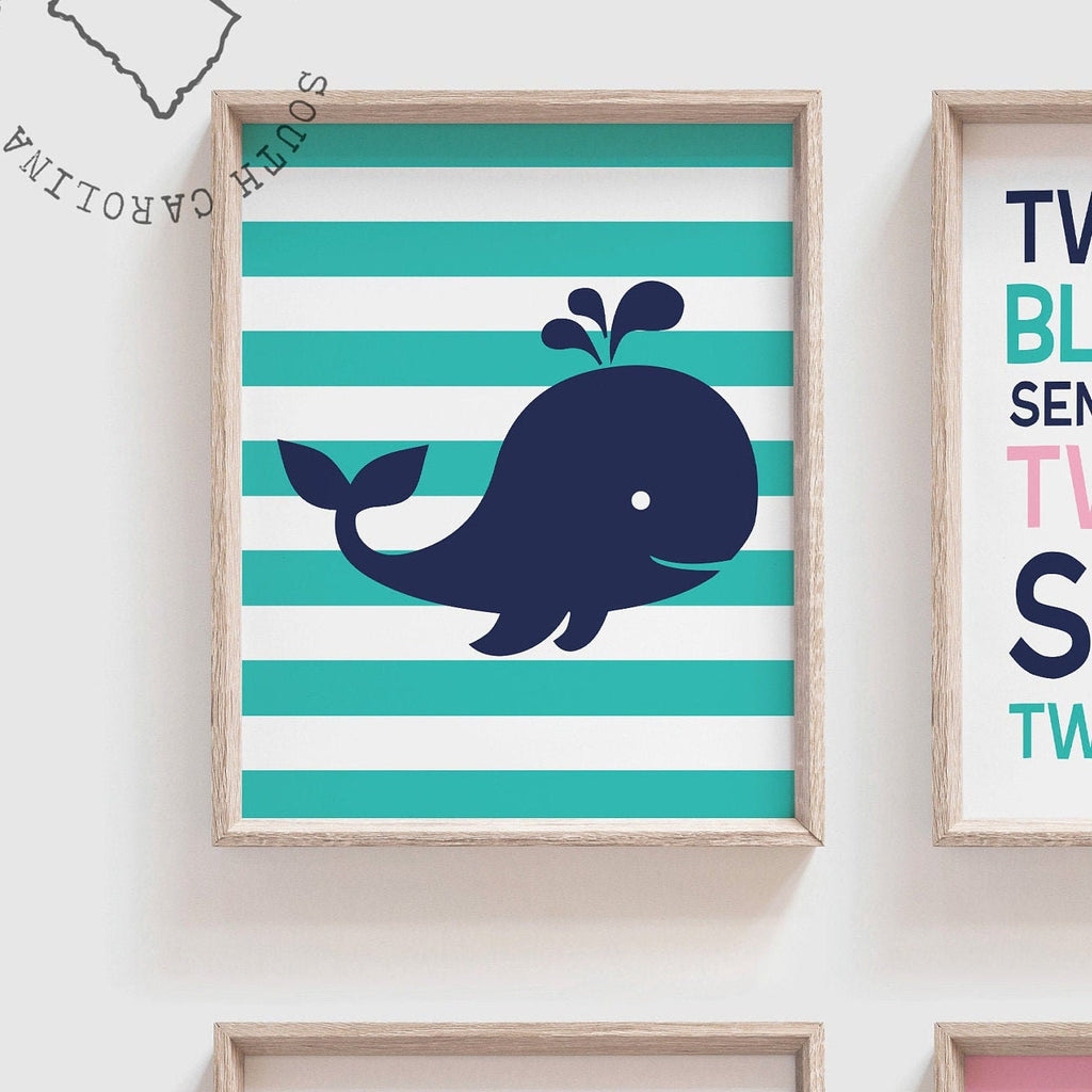 Twin babies, boy girl twin art, twin whale theme, boy girl twin wall decor, wall art for twins, twin art, twin decor, twin baby shower gift
