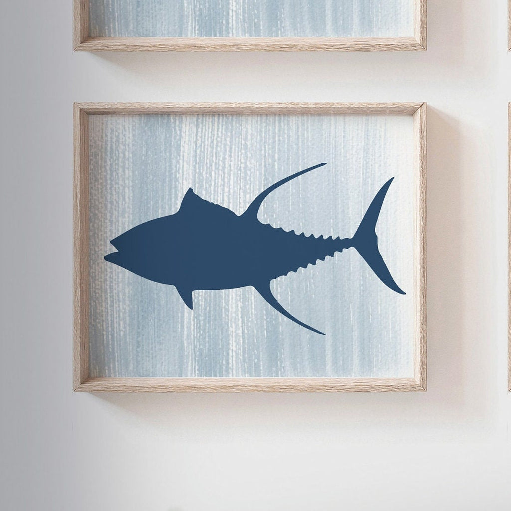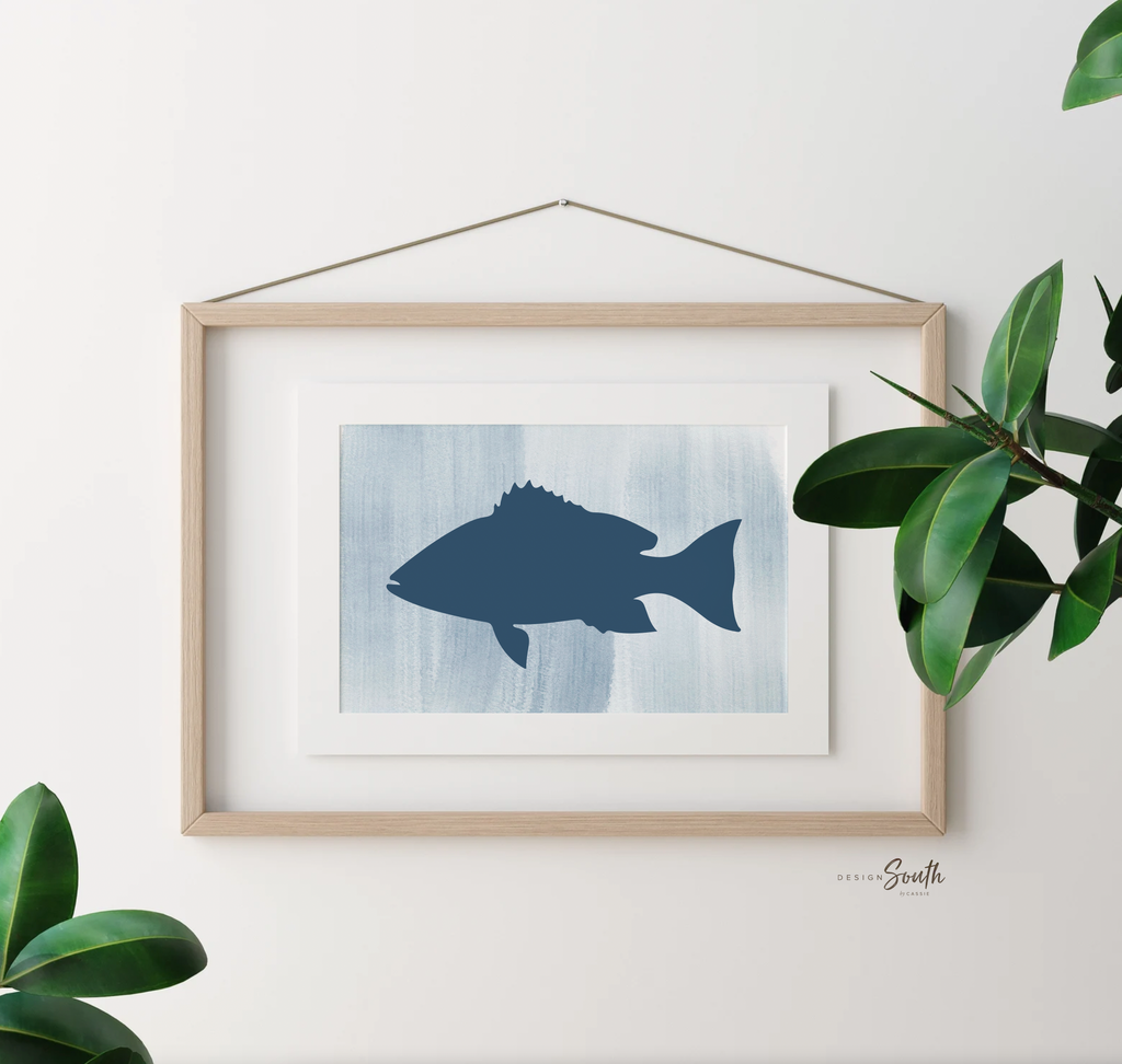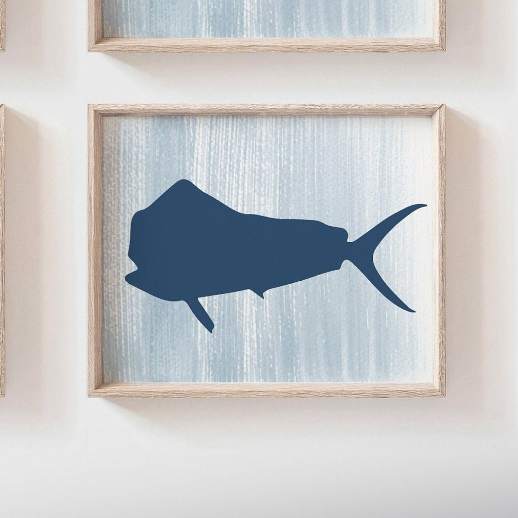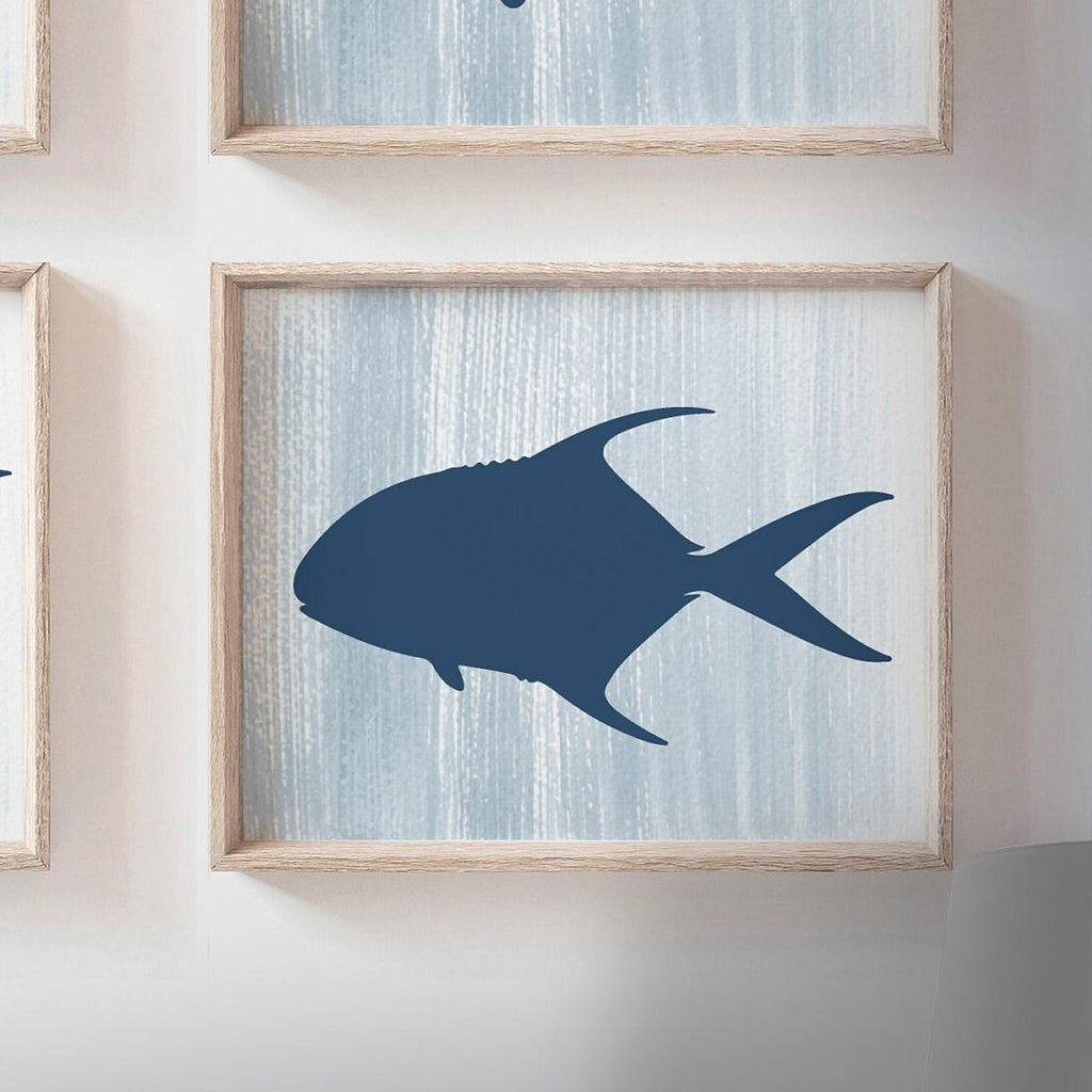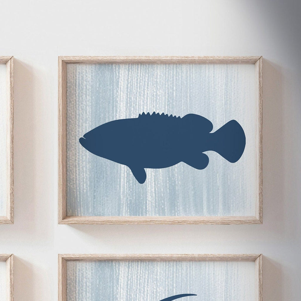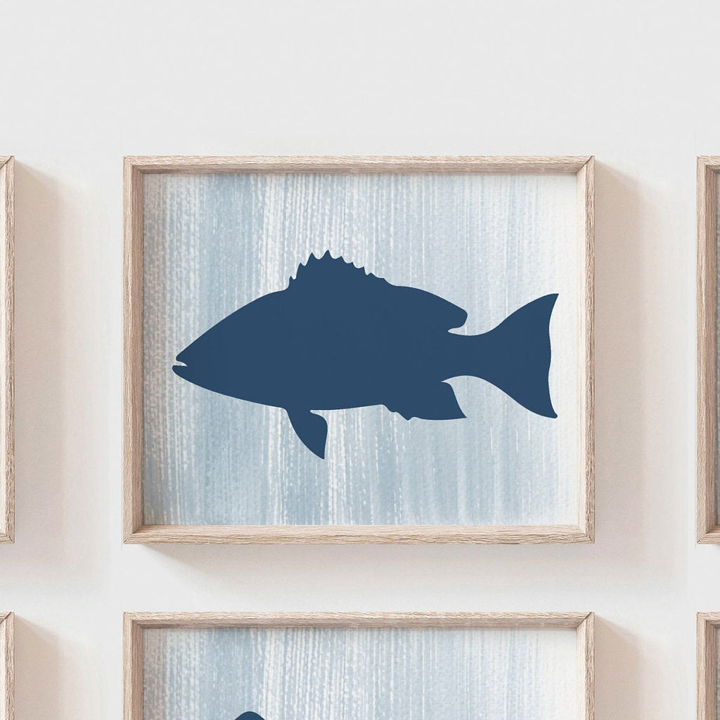 ☛ ☛ ☛ FRAMES ARE NOT INCLUDED ☚ ☚ ☚Thank you for choosing Design South. 🌸I take pride in creating all of my designs. These deep sea fish wall art prints will redefine the walls of a child's nursery, playroom or bedroom. Each design is curated with a passion and vision to create inspired spaces for you and your little ones.Ready to order THESE prints for your home decor? It’s EASY! Complete check out and include the information below in the ‘notes to seller’ section when ordering. 1. Choose the size of your prints. Options: 5x7, 8x10, 11x14. ----------------♥ WHAT YOU WILL RECEIVE ♥-----------------➤ Six UNFRAMED art prints. Product description: Offshore fish including a marlin, dorado, yellowfin tuna, red snapper, permit and grouper in navy blue with light indigo washed backgrounds. Other color options are also available in my shop.Frames are for decoration purposes and are not included. The prints should be framed behind glass once received. These are not canvas prints. My art is professionally printed on high-quality fine art paper. Each piece is printed as ordered. ---------------------------♥ TIMELINE ♥-----------------------------Timeline: Orders are carefully packaged and typically ready to ship within 3-5 business days. See my shop website for updated turnaround times. If you would like a custom order, visit my shop website and send me a message. Note: Custom orders will require a proof sent to you via email and confirmation regarding the proof for your order to be mailed. **Each day that we do not receive information such as your child's name, or an approval of the proof, it will delay the shipping date. -----------------------♥ TERMS OF USE ♥-------------------------Product cannot be reproduced, resold or distributed. The artwork in this shop is the property of Design South. The artwork offered here is for personal use only.Thanks for choosing Design South! - Cassie DESIGN SOUTH© COPYRIGHT 2022 / Design South / Cassie Rinehart