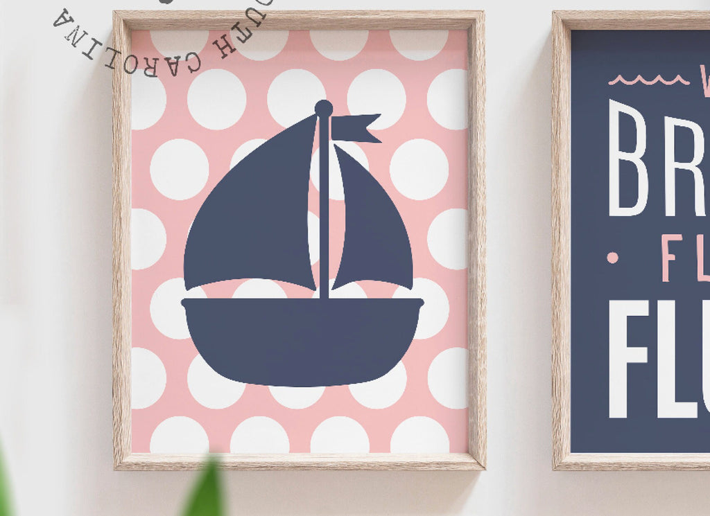 Thank you for choosing Design South. I take pride in creating all of my designs. These nautical-themed wall prints are perfect for a girl's bathroom.