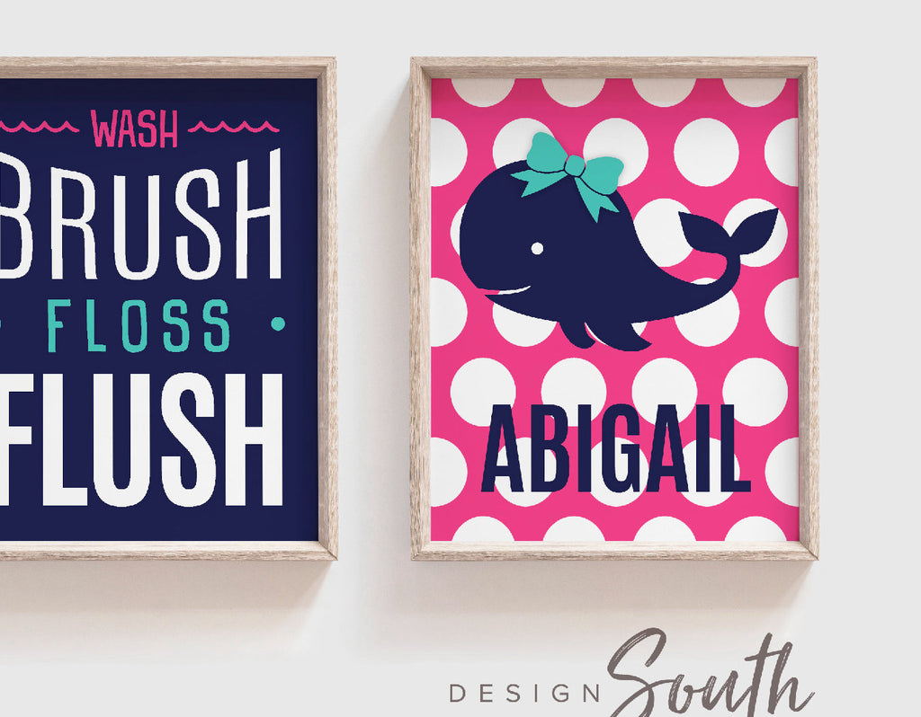 Kids whale bathroom, boy girl shared bathroom prints, whale theme bathroom brother sister, children's bathroom ideas, pink teal bathroom kid
