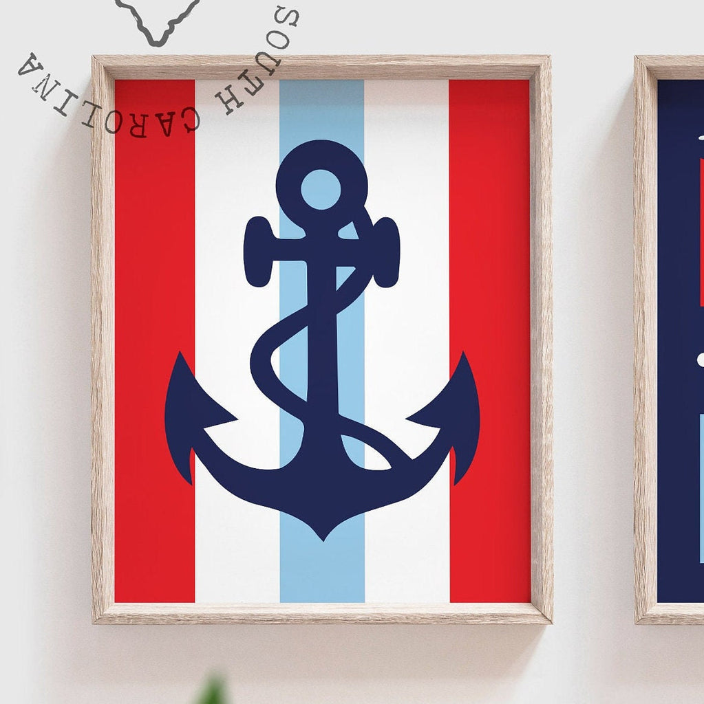 Thank you for choosing Design South. I take pride in creating all of my designs. These nautical-themed wall prints are perfect for a boy's bathroom.