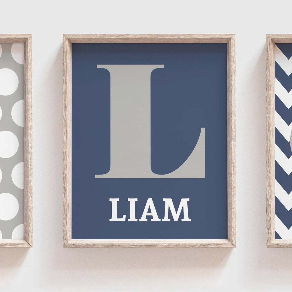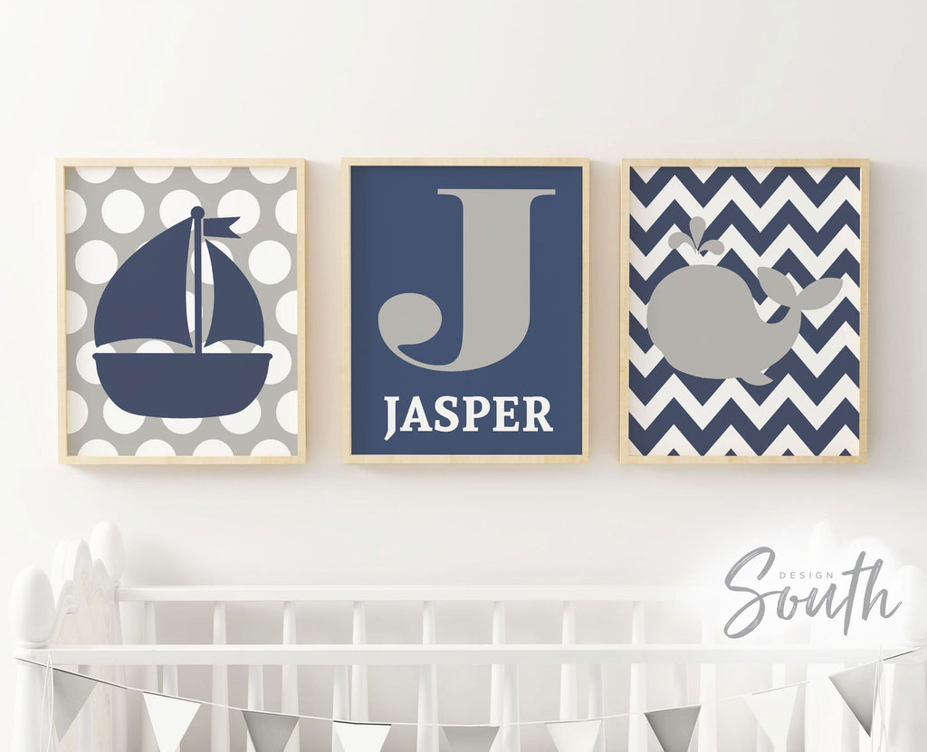 Nautical navy and gray nursery decor, personalized prints, boys name wall art, baby boy nautical room decor, nautical baby shower gift boy