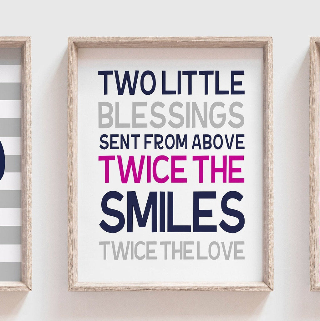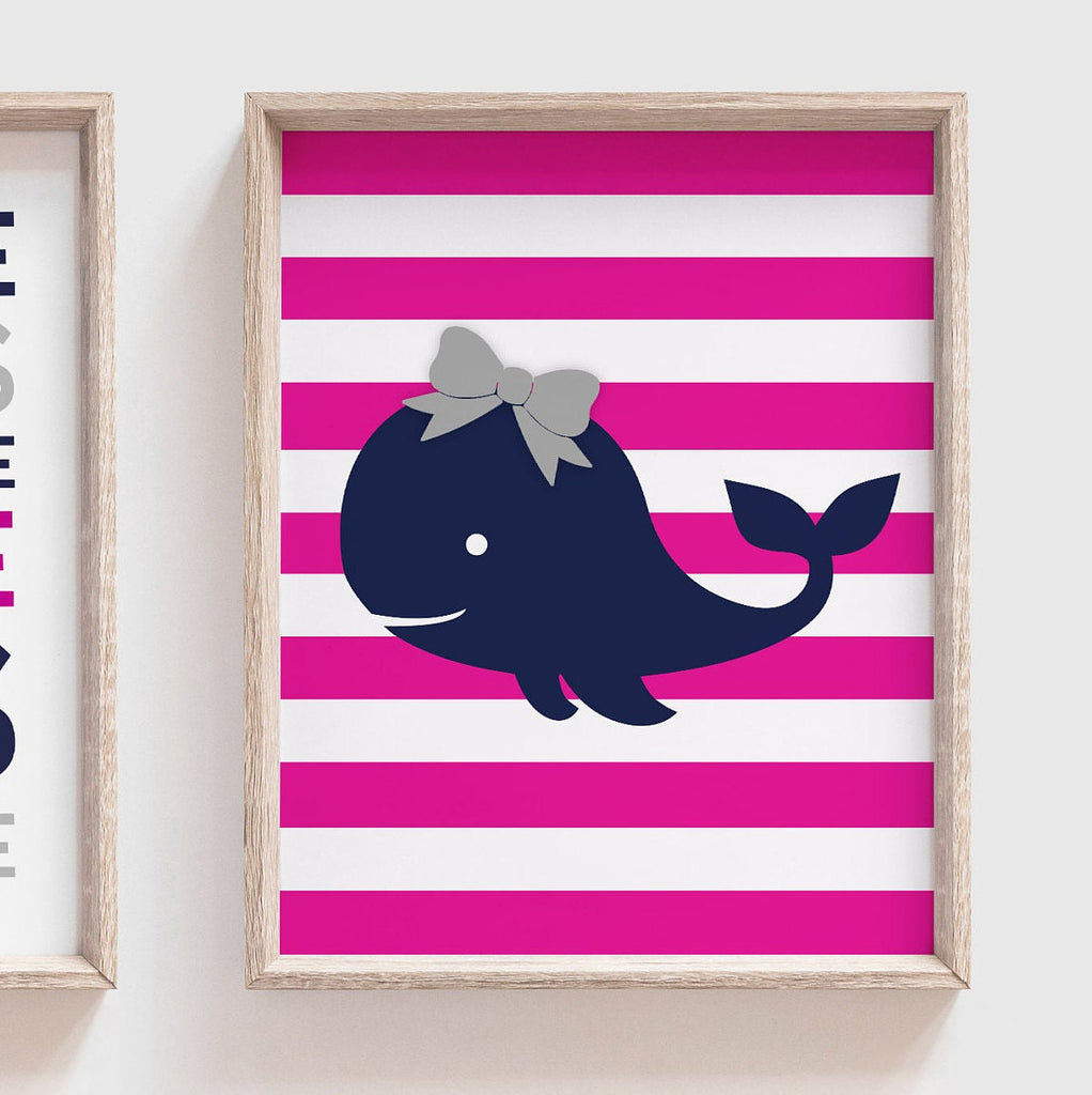 Twin nursery decor navy blue pink and gray, twin nursery whale nautical, pink and navy twin art, nursery prints for twins, twice the love