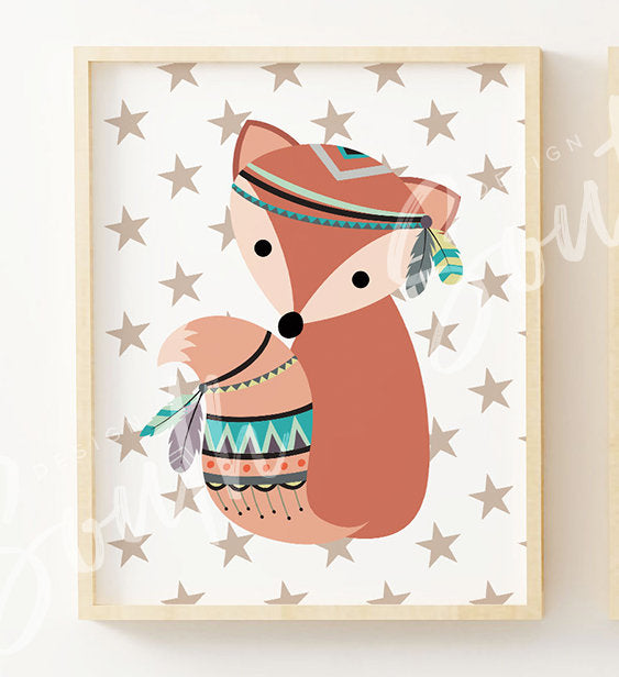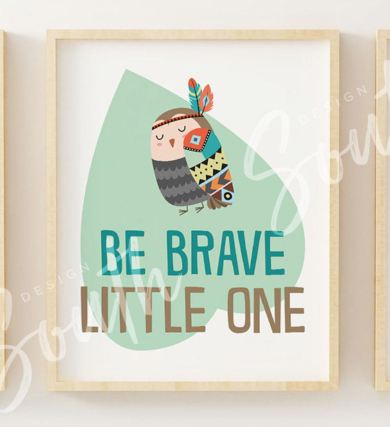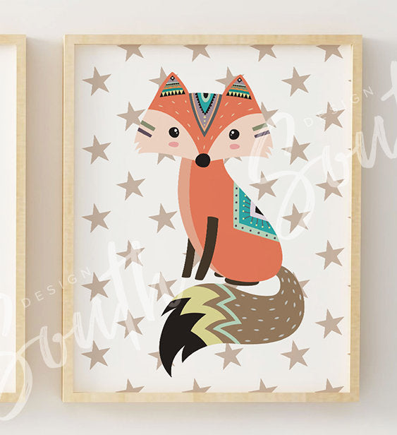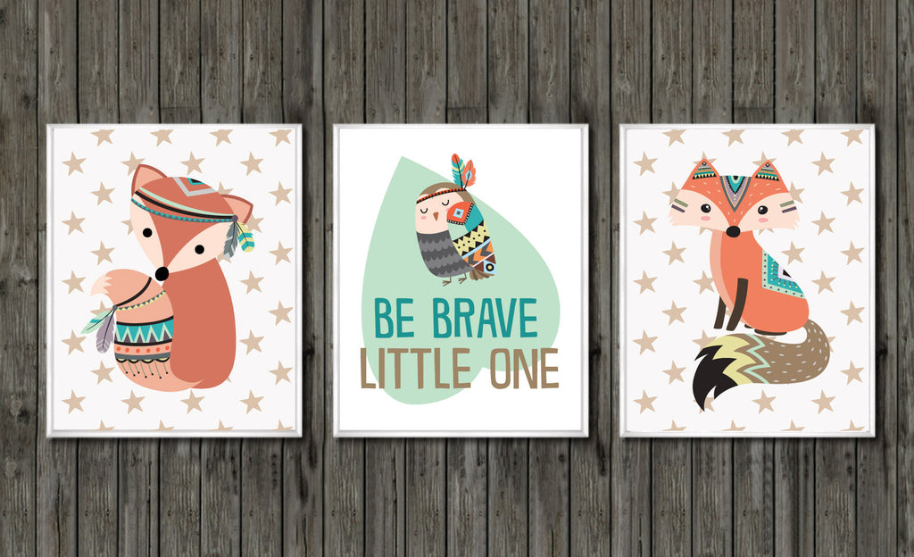 Fox wall art, fox nursery decor, cute fox nursery, be brave little one, woodland fox nursery decor, tribal nursery animals, baby fox decor