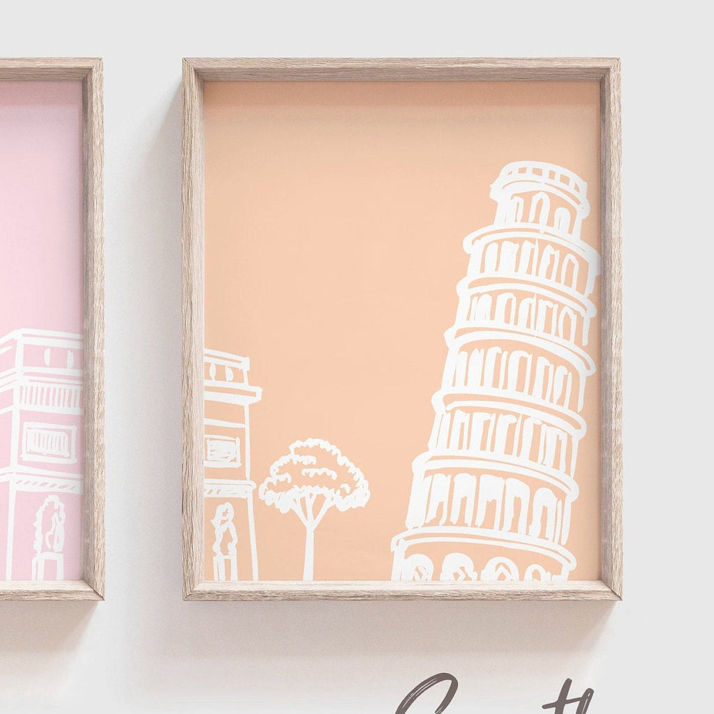 Pastel travel themed baby girl art, paris london new york landmarks wall art, leaning tower of pisa, paris eiffel tower art, travel nursery