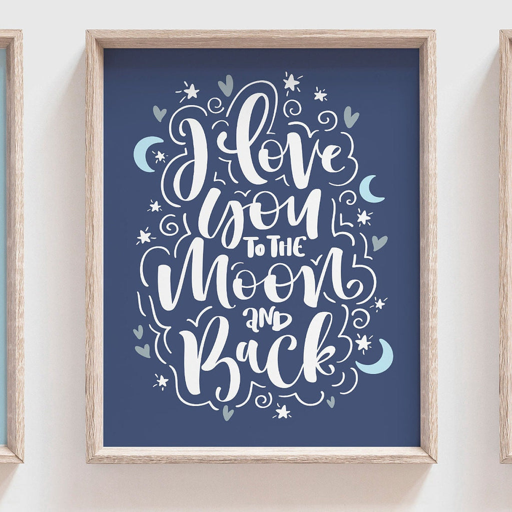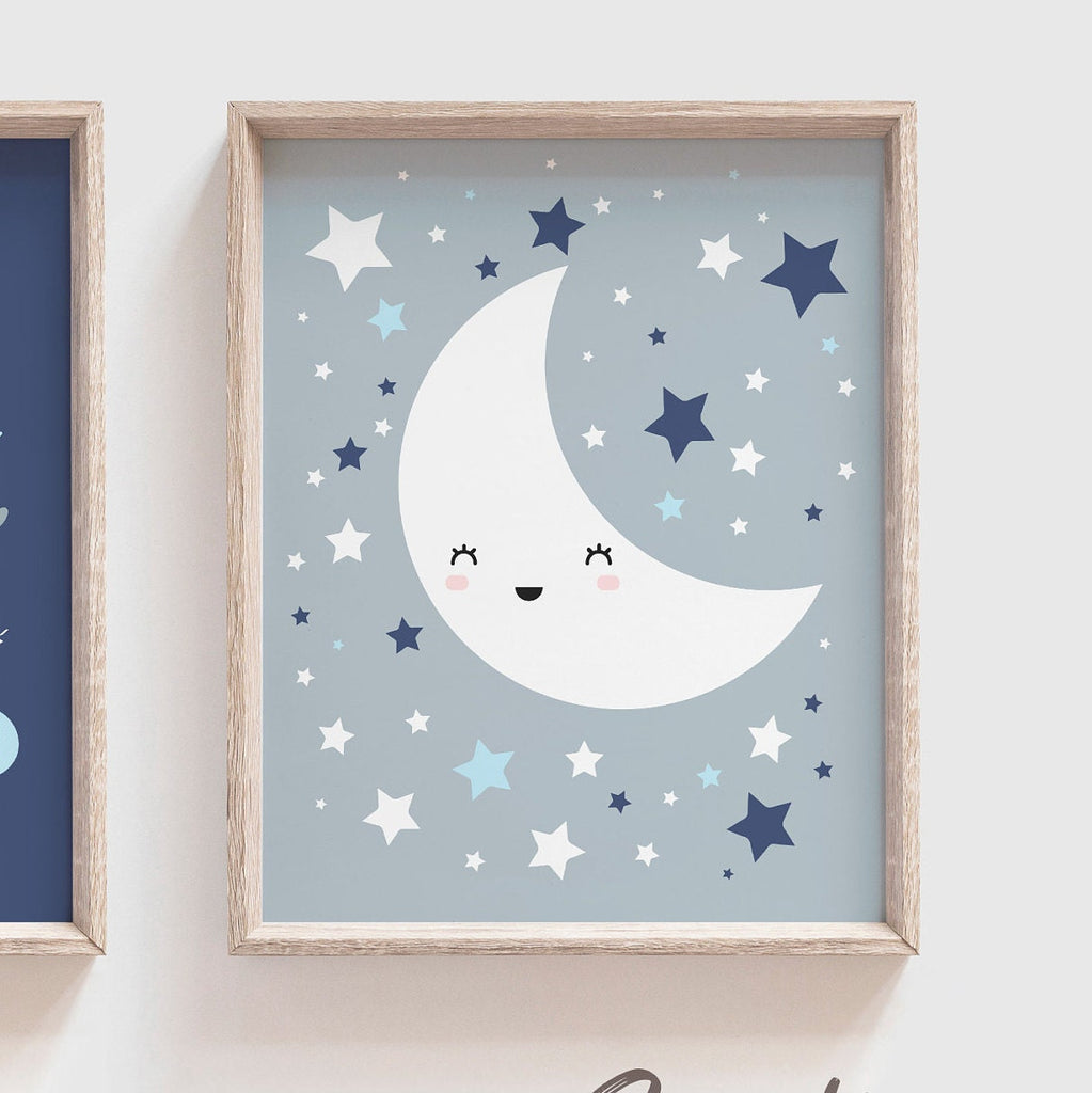 Baby boy nursery art prints blue and gray, boy nursery stars moon clouds, baby boy nursery decor, wall art for boy, little stars baby art