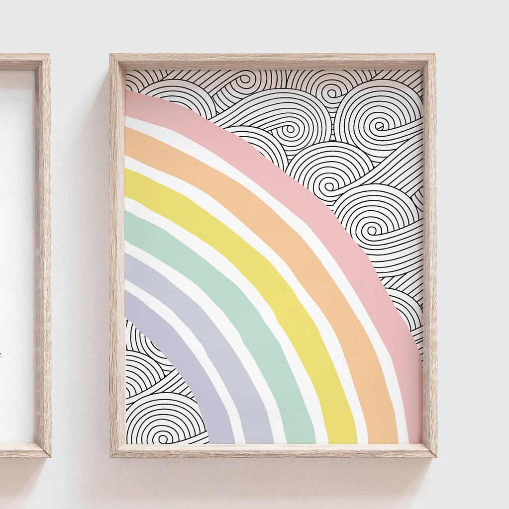 I take pride in creating all of my designs. These contemporary rainbow theme wall art prints will redefine the walls of a girl's nursery, playroom or bedroom. Each design is curated with a passion and vision to create inspired spaces for you and your little ones.