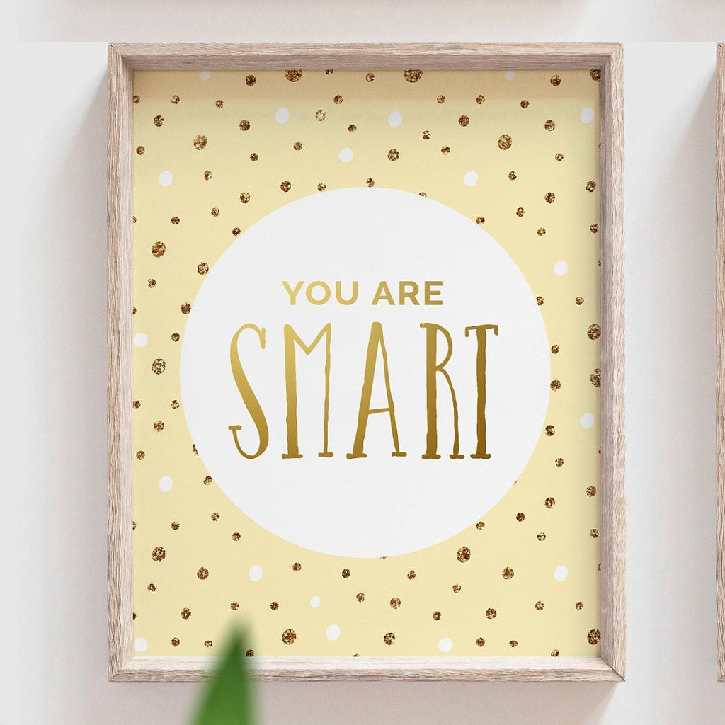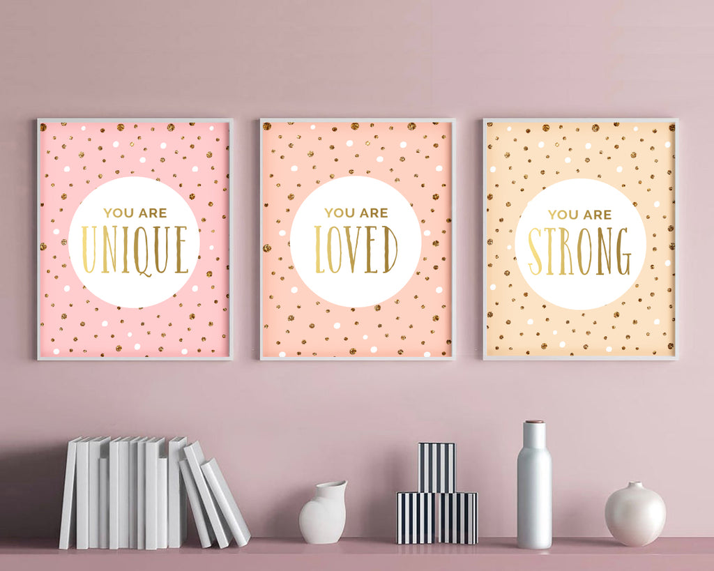 Product description: Positive themed prints featuring bright colors and inspirational quotes reading, "You are kind. You are smart. You are brave. You are strong. You are loved. You are unique." Other options are also available in my shop. Other options are also available in my shop.