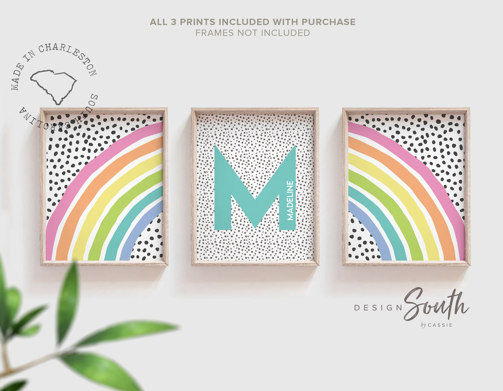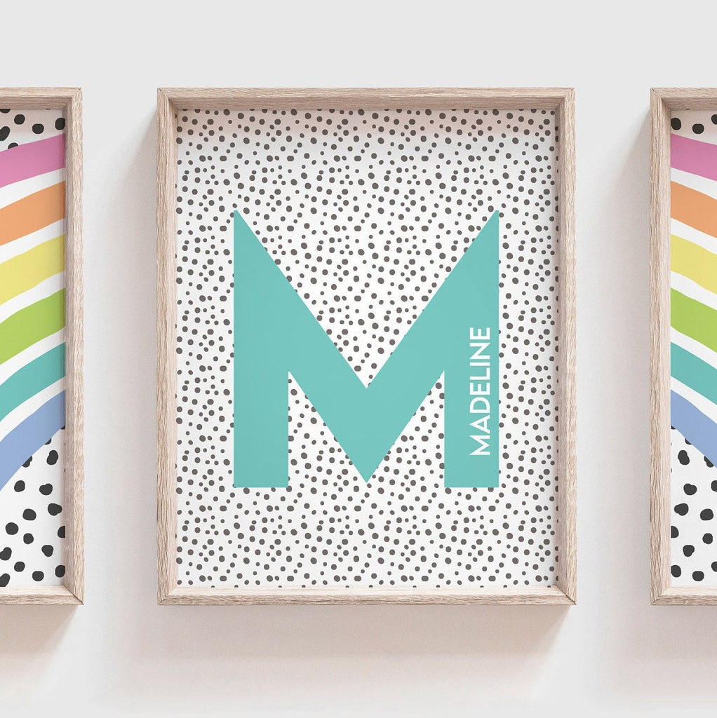 Product description: Rainbow design prints with a matching personalized print to be customized with your child's name and initial. Other options are also available in my shop.