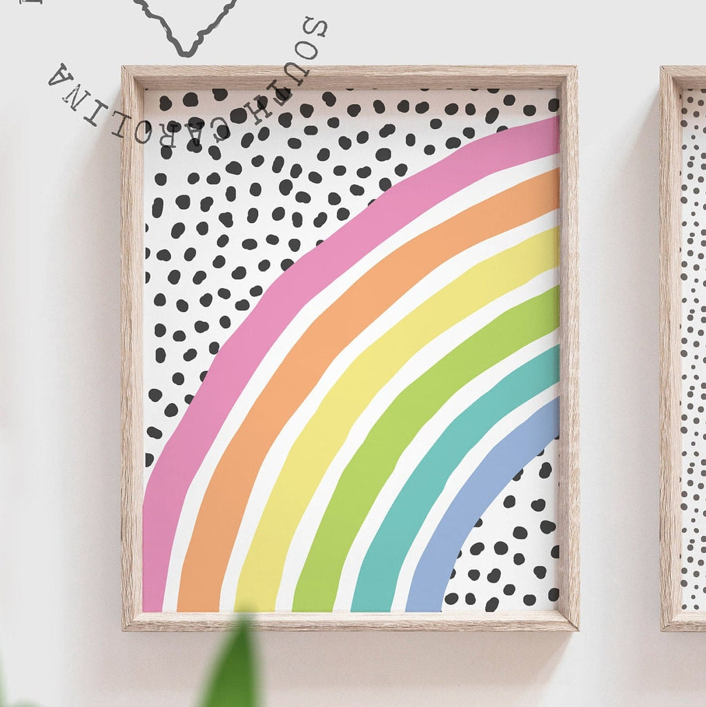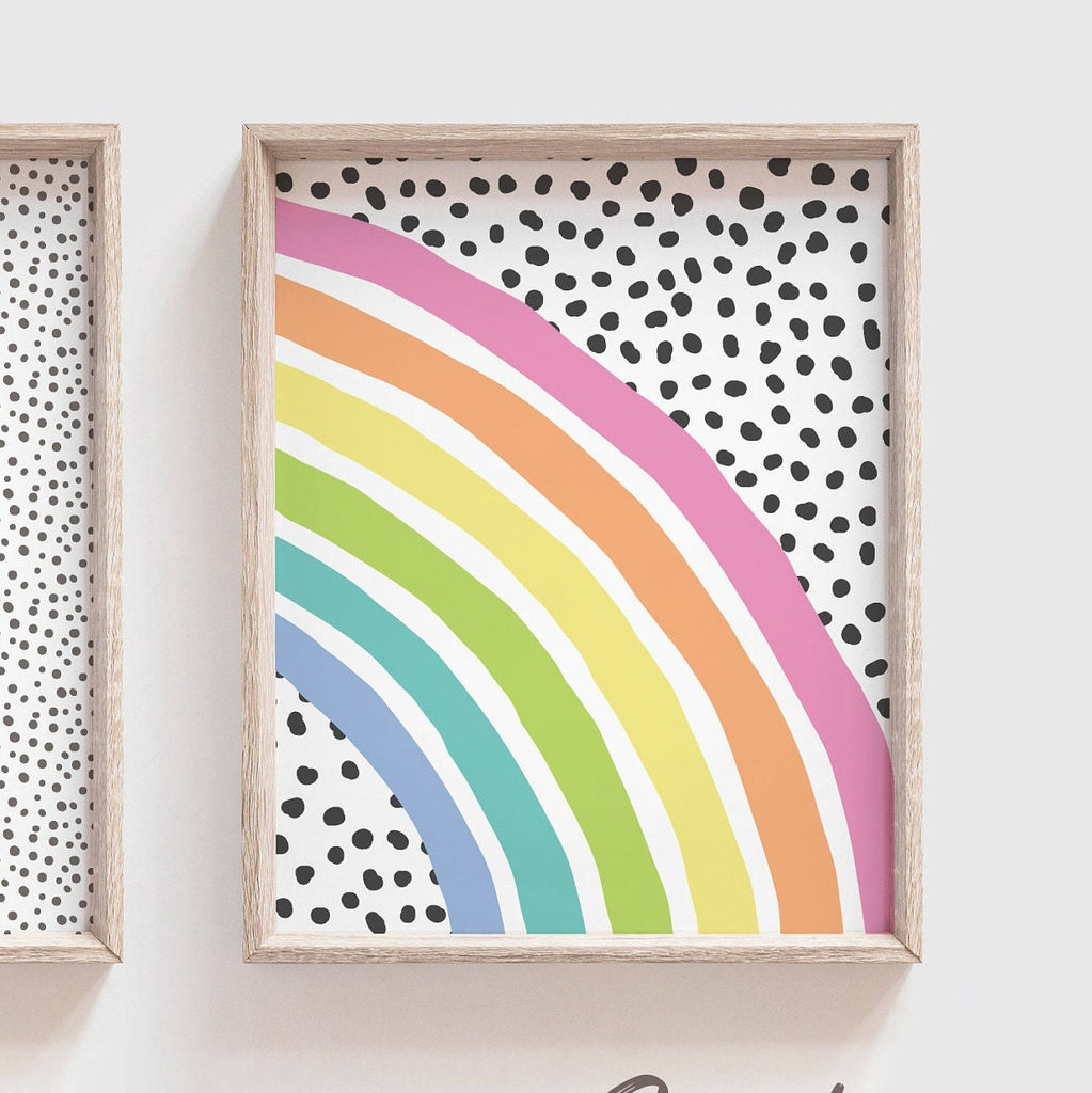 I take pride in creating all of my designs. These contemporary rainbow theme wall art prints will redefine the walls of a girl's nursery, playroom or bedroom. Each design is curated with a passion and vision to create inspired spaces for you and your little ones.