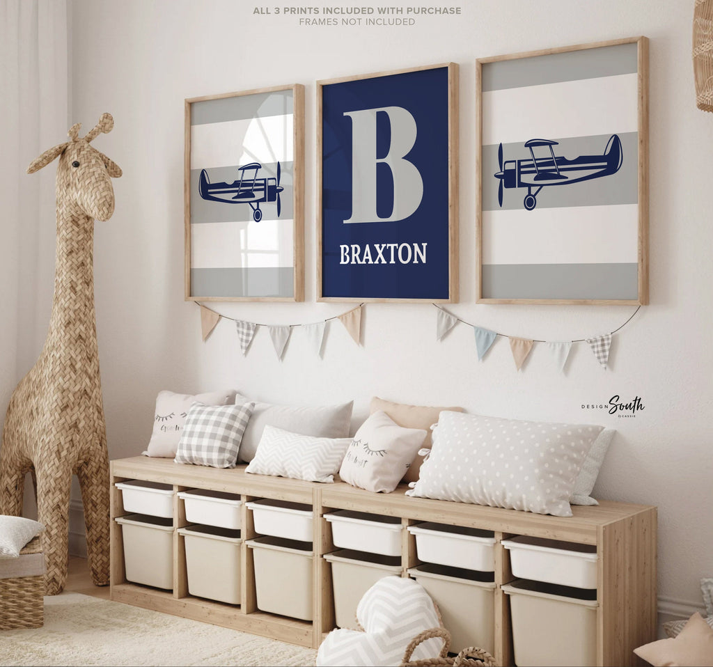 Airplane baby, navy blue and gray, kids airplane room art, timeless airplane art, boys airplane nursery, airplane art boys, aviation nursery