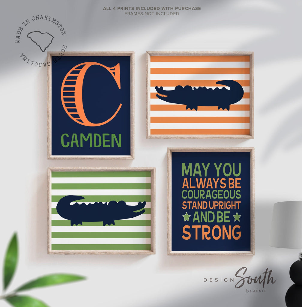 Alligator nursery decor, orange navy blue and green, quote for boys, boys alligator nursery, personalized name decor, gator prints boys wall