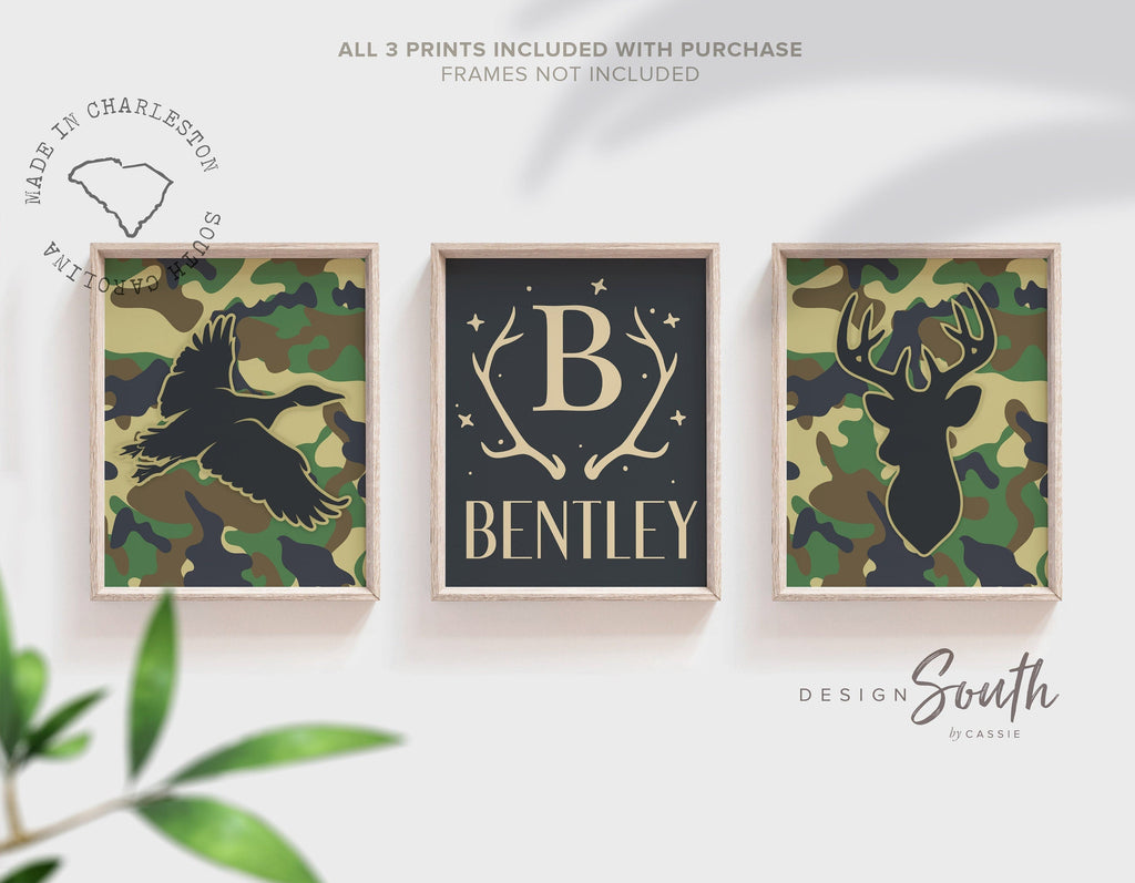 Camouflage boys room, custom deer name gift, boys duck deer bass fish, ducks eight point bucks, duck hunter deer hunter, camouflage wall art