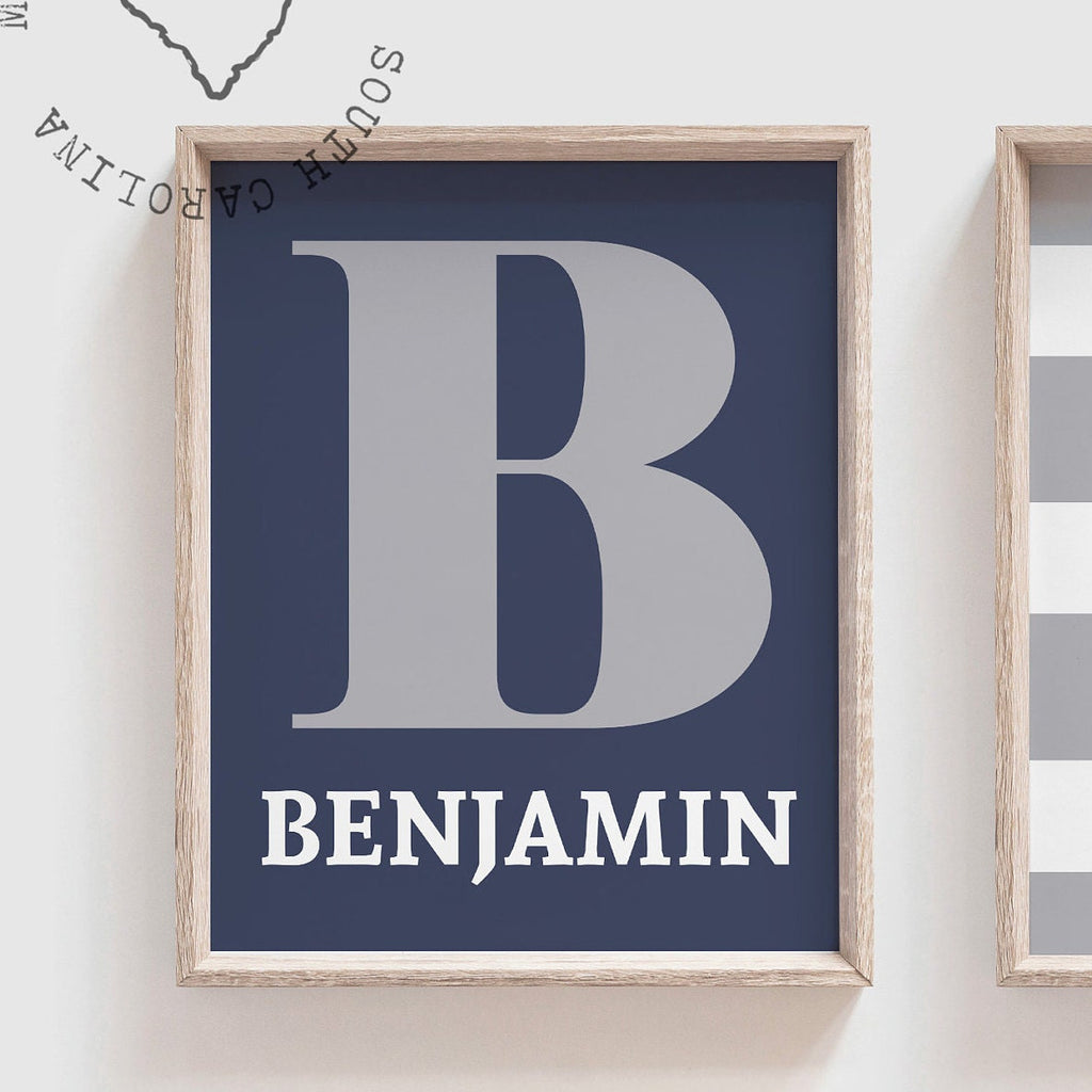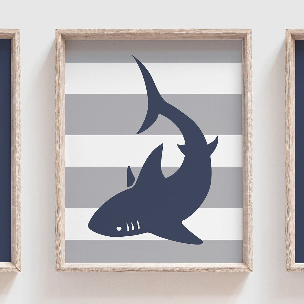 Shark boys room name initial personalized, shark bedroom decor, gift for boy shark lover, shark themed boys room, big boy bedroom wall art