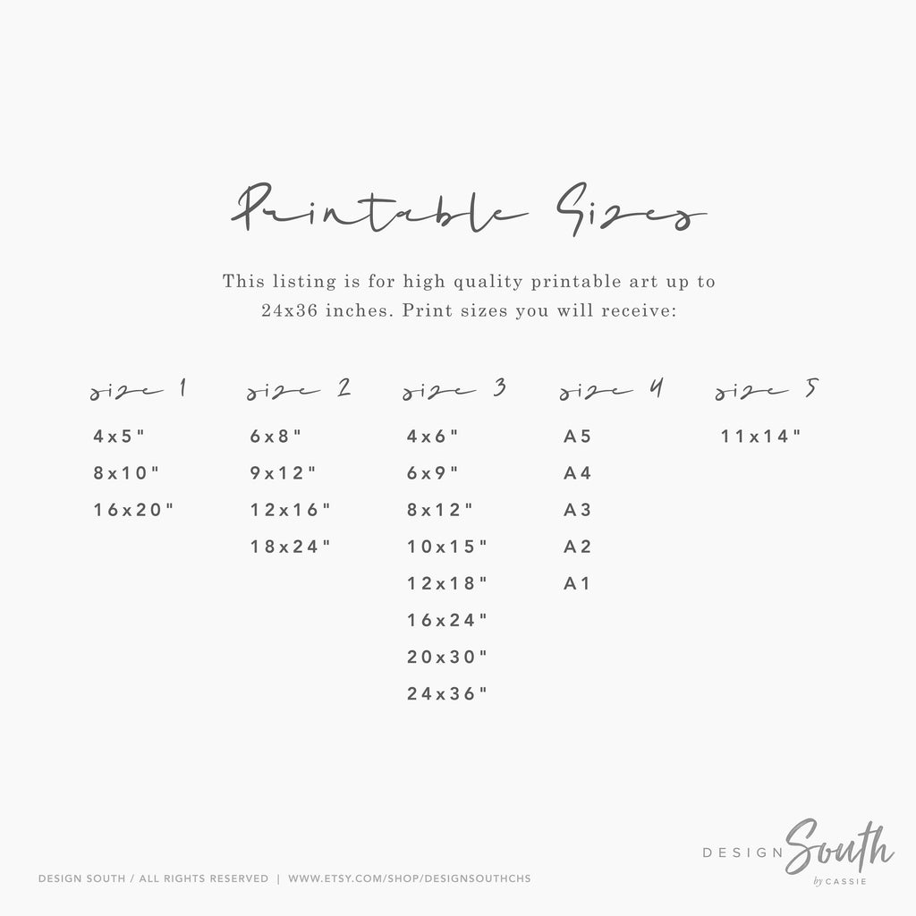 ➤ You will receive a PRINTABLE PDF file at the size of your choice. If you would like a different size than offered, please specify the desired size. If you would like a JPG instead of a PDF, please specify.