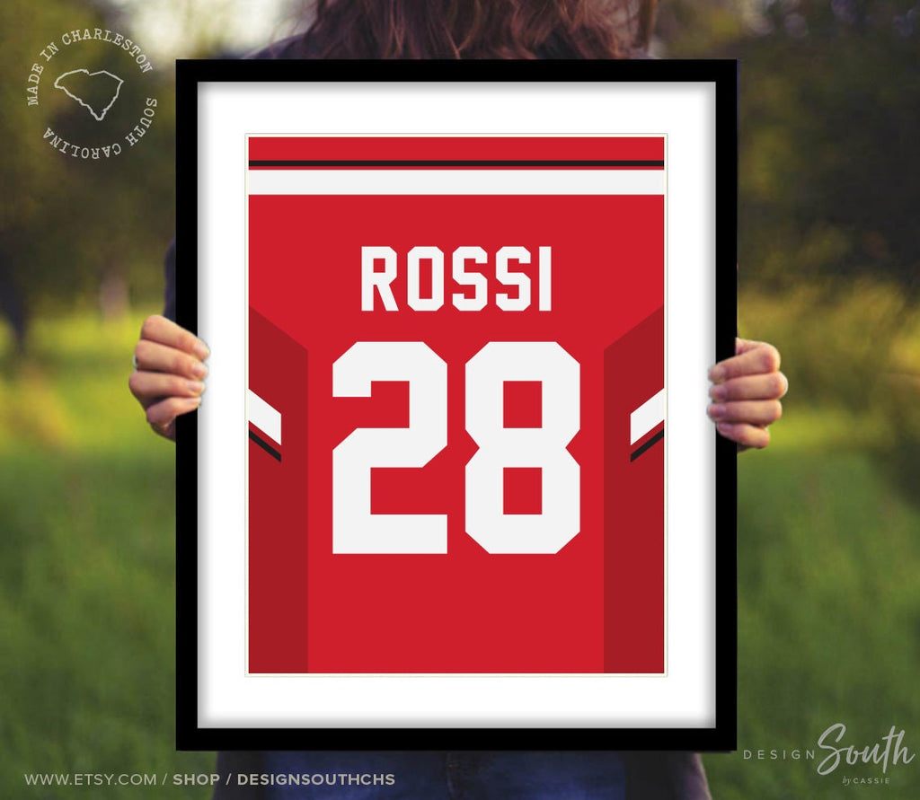 Red white jersey name and number personalized poster print, personalized sports basketball football jersey poster print, sports gift art boy