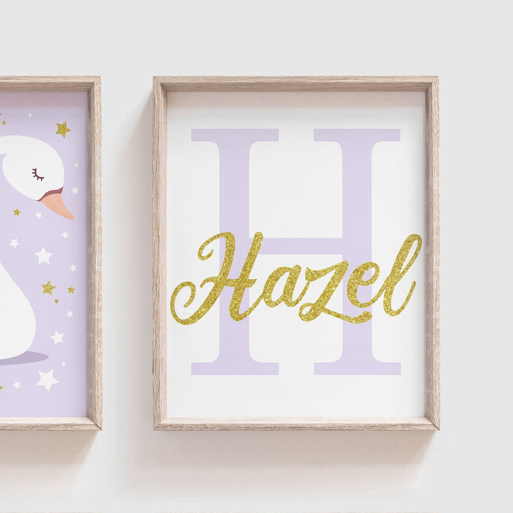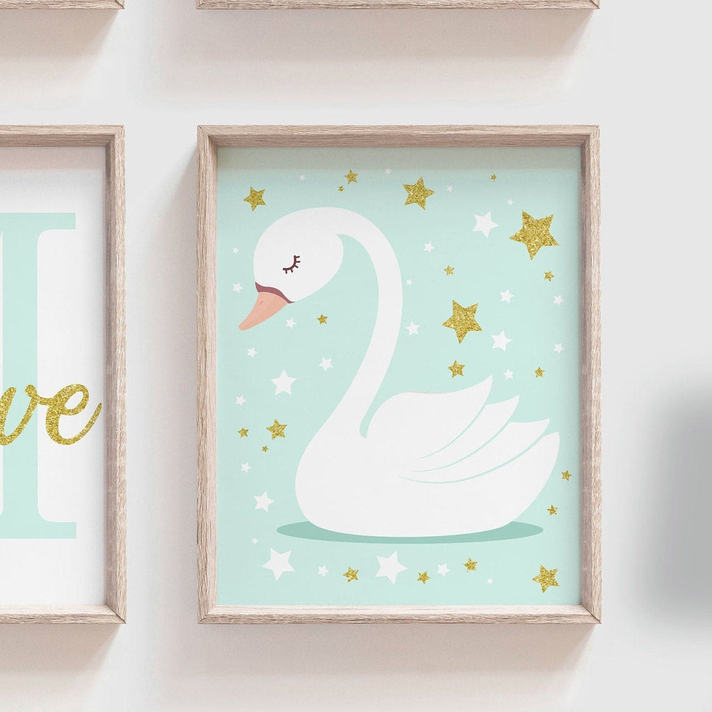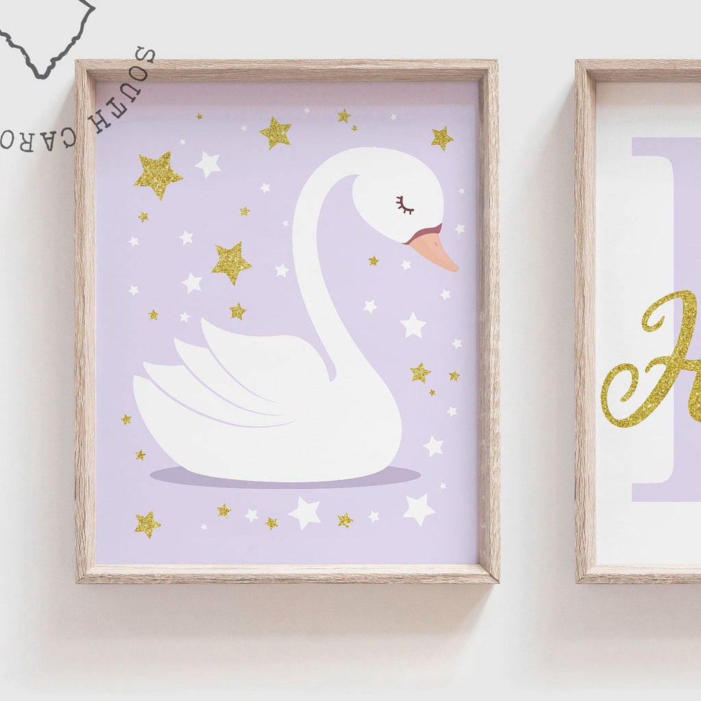 Lilac and mint sisters wall art, sisters personalized signs, lilac mint and gold, sister decor wall prints, playroom two girls, swan theme