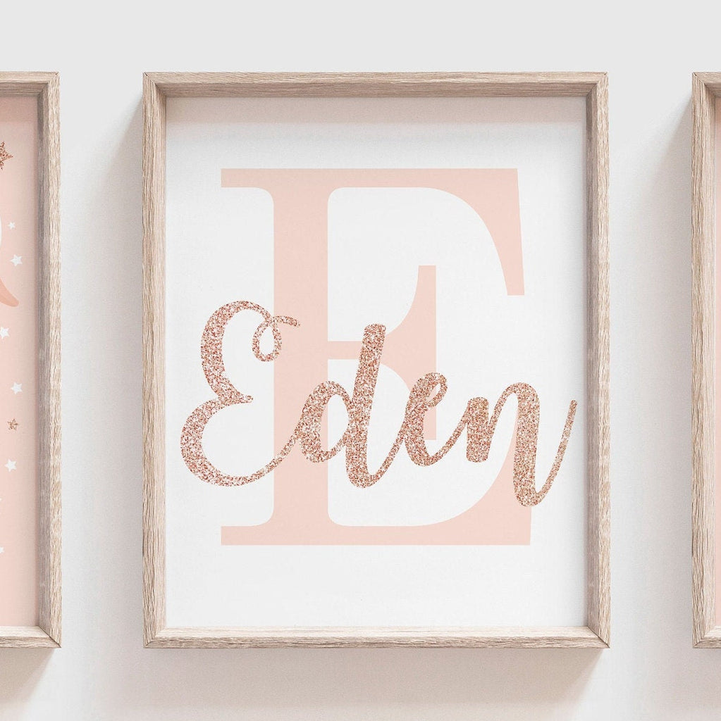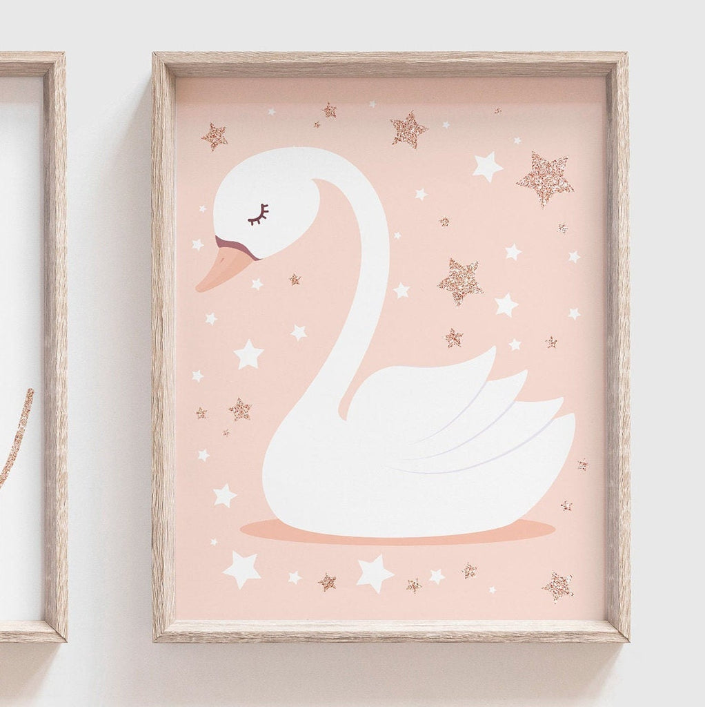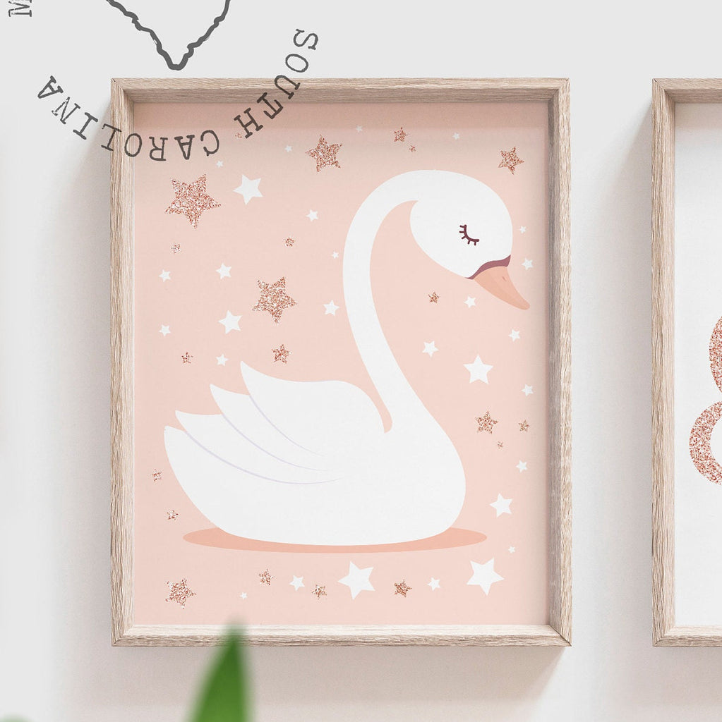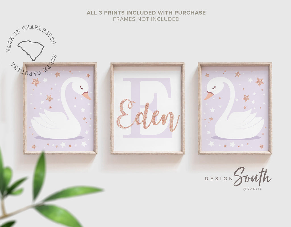 Rose gold name, swan nursery name, baby shower gift, baby girl wall art, blush and rose gold, initial print, custom name, rose gold nursery