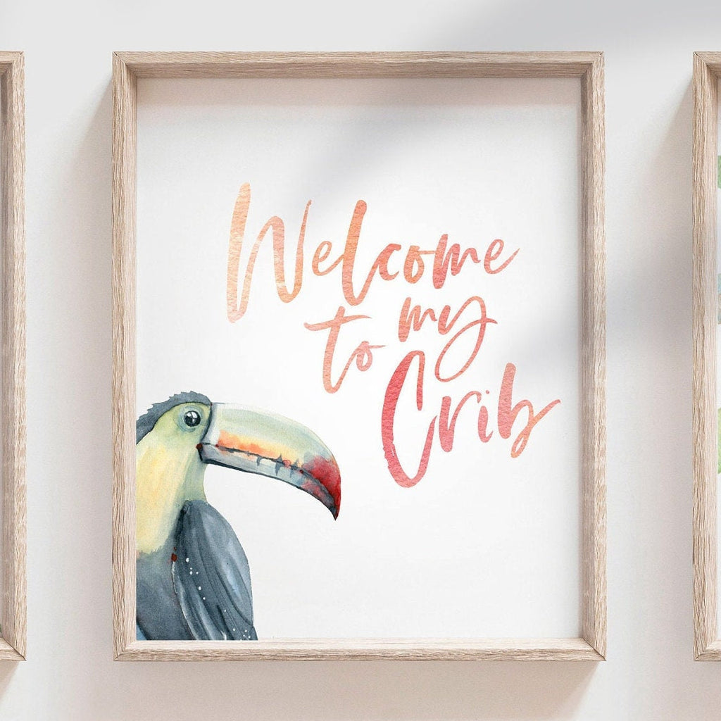 Baby tropical crib signs, artwork above crib tropical, nursery wall decor, baby nursery decor green palm, baby girl nursery decor tropical