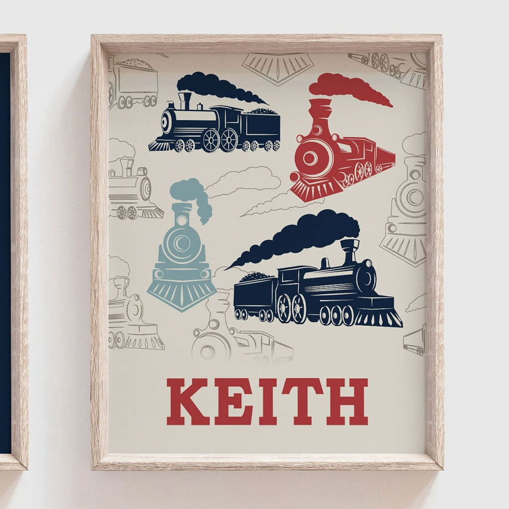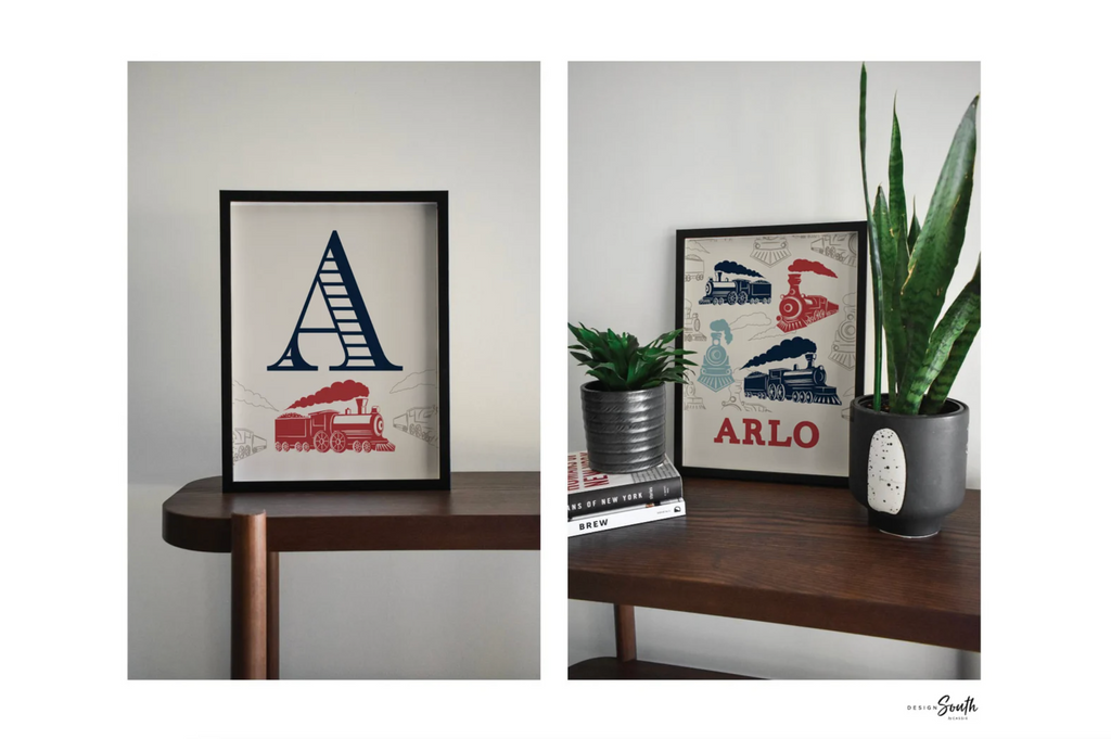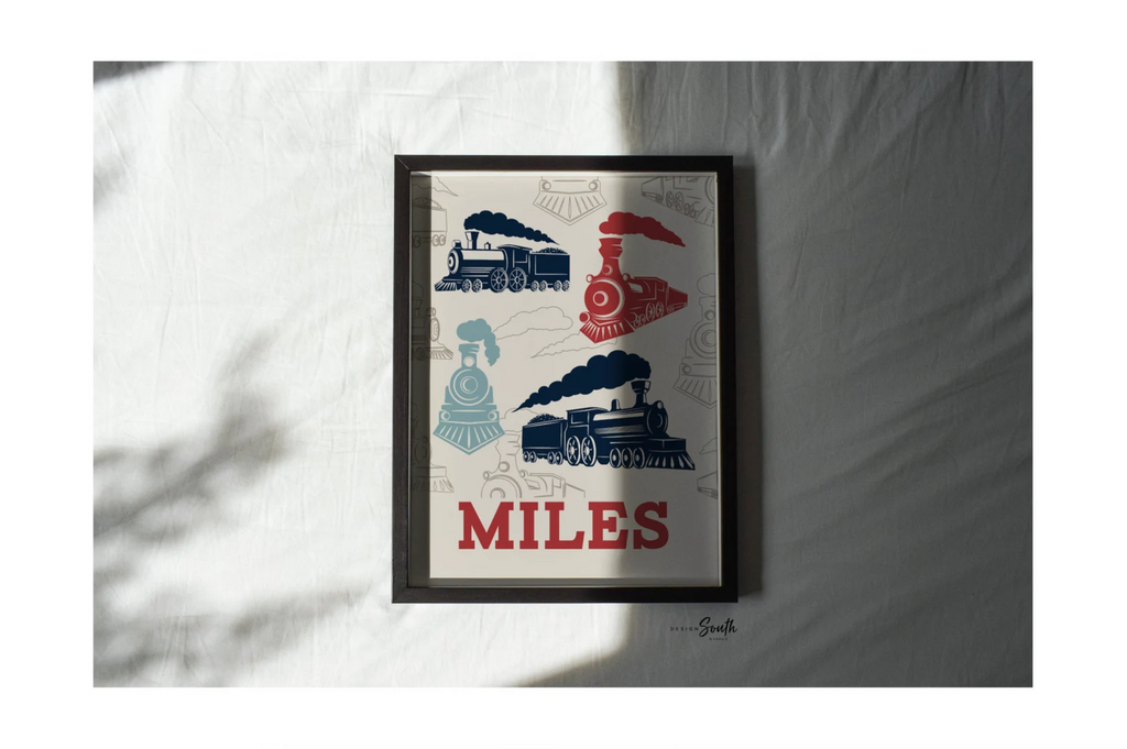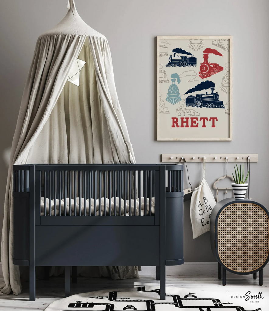I take pride in creating all of my designs. These train themed wall art prints will redefine the walls of a boy's nursery, playroom or bedroom. Each design is curated with a passion and vision to create inspired spaces for you and your little ones.