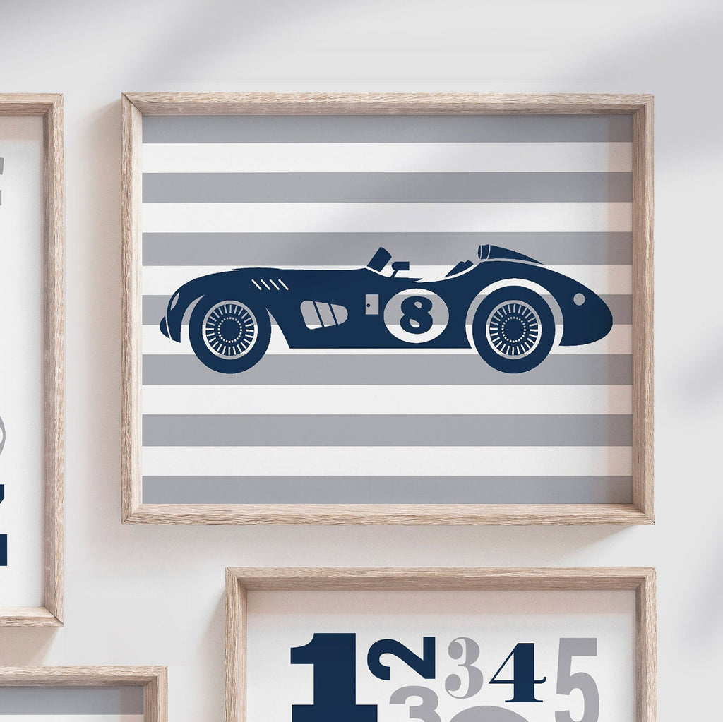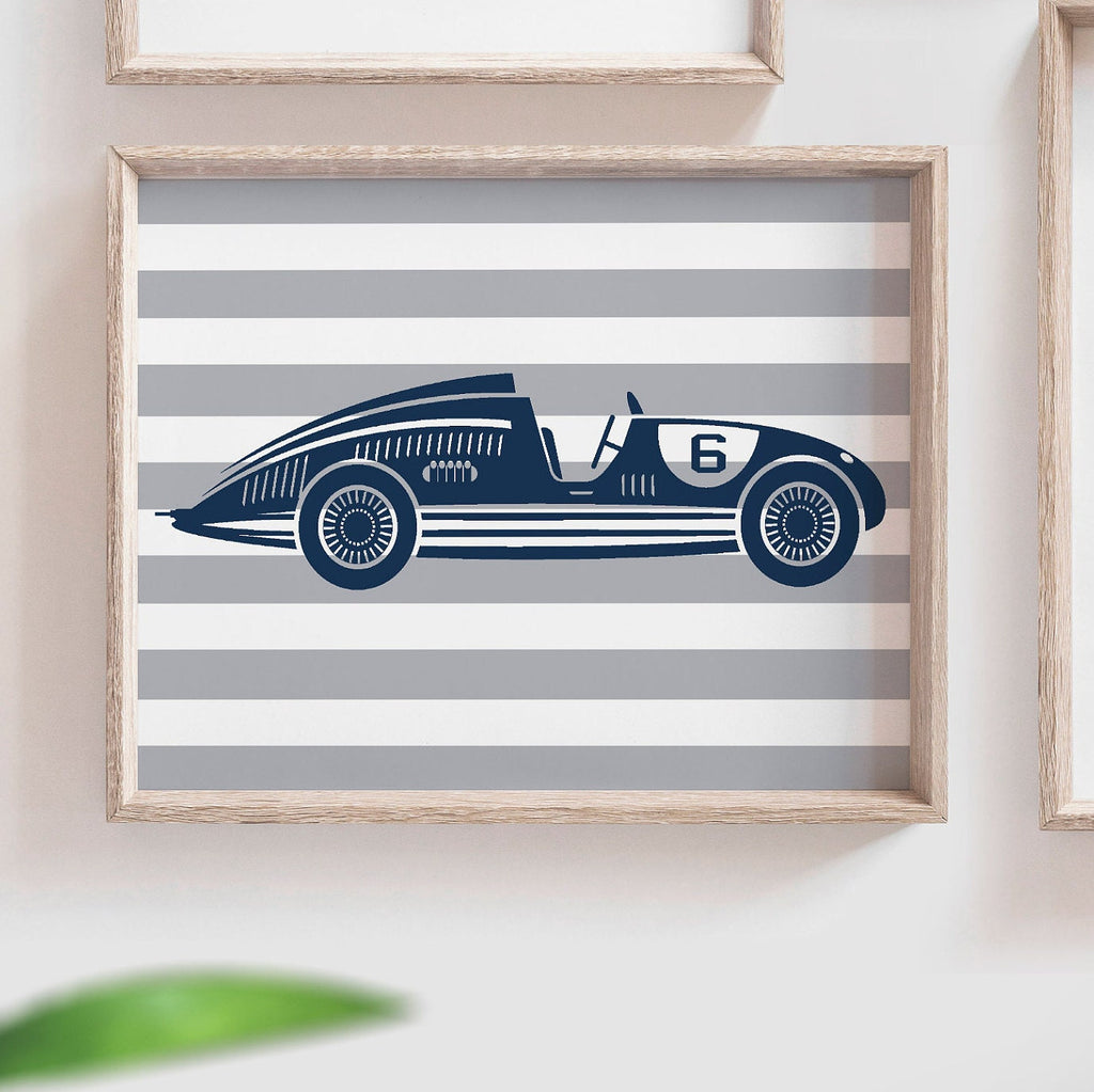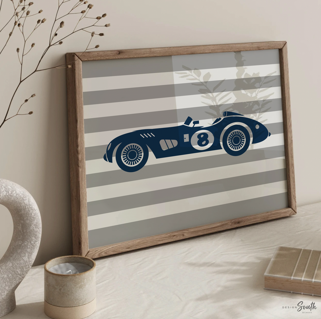I take pride in creating all of my designs. These timeless race car themed wall art prints will redefine the walls of a boy's nursery, playroom or bedroom. Each design is curated with a passion and vision to create inspired spaces for you and your little ones.