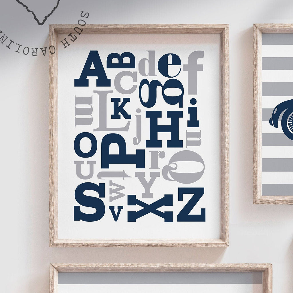 Product description: Vintage race car theme in navy blue and smoke gray. Prints include an alphabet design, numbers design and vintage race cars. Other color options are also available in my shop.