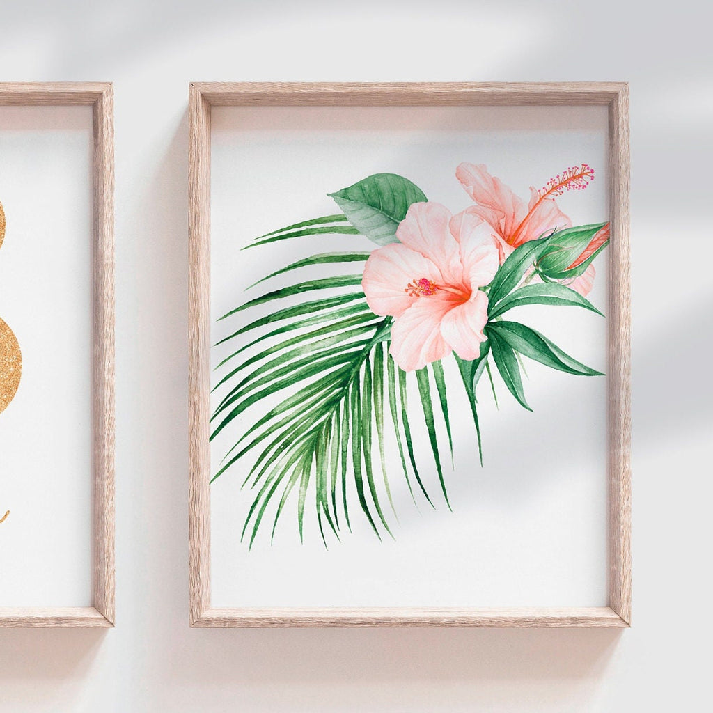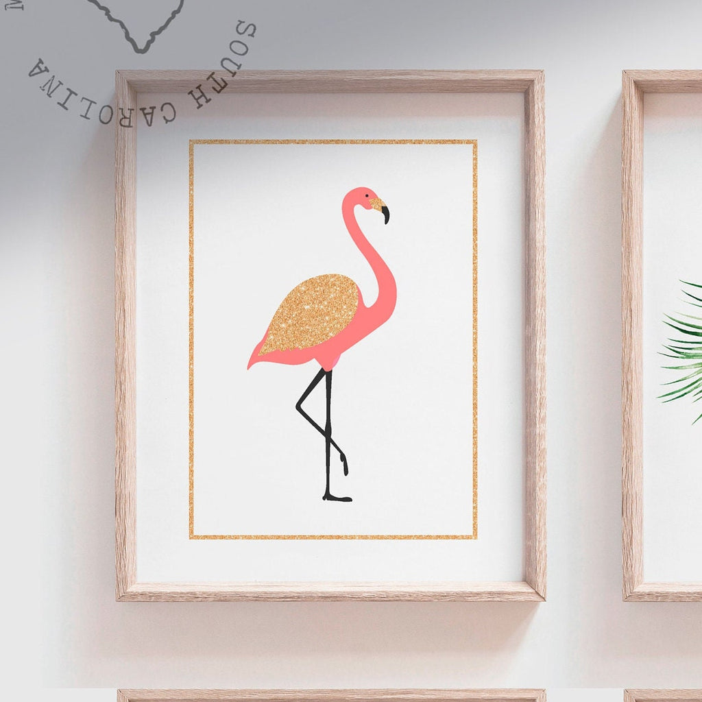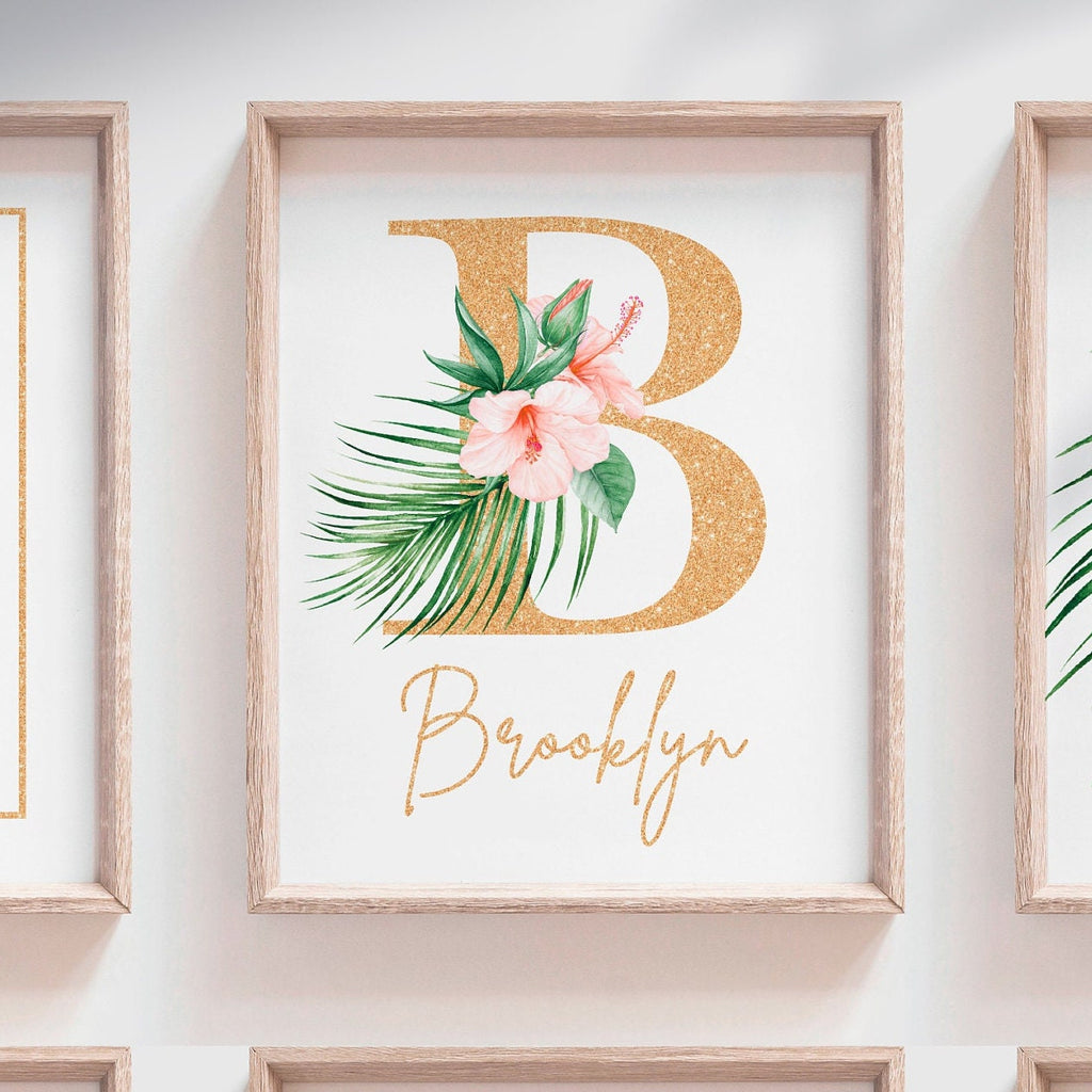 Coral gold baby room art, little girl tropical gold sparkle room, coral blush tropical girl room art, toddler bedroom personalized name girl
