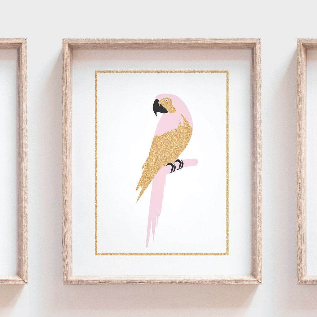 ☛ ☛ ☛ FRAMES ARE NOT INCLUDED ☚ ☚ ☚Thank you for choosing Design South. 🌸I take pride in creating all of my designs. These timeless tropical wall art prints will redefine the walls of a girl's nursery, playroom, bedroom or bathroom. Each design is curated with a passion and vision to create inspired spaces for you and your little ones.Ready to order THESE prints for your home decor? It’s EASY! Complete check out and include the information below in the ‘notes to seller’ section when ordering. 1. Choose the size of your prints. Options: 5x7, 8x10, 11x14.2. If color changes are needed, provide the chosen colors in 'notes to seller' section during checkout.----------------♥ WHAT YOU WILL RECEIVE ♥-----------------➤ Three UNFRAMED art prints. Product description: Girl's tropical themed prints featuring a flamingo, pineapple and parrot in cupcake, faux gold sparkles and black accents. Other options are also available in my shop.Colors can be customized to suit your needs. A color change is included in the price. Frames are for decoration purposes and are not included. The prints should be framed behind glass once received. These are not canvas prints. My art is professionally printed on high-quality fine art paper. Each piece is printed as ordered. ---------------------------♥ TIMELINE ♥-----------------------------Timeline: Orders are carefully packaged and typically ready to ship within 3-5 business days. See my shop website for updated turnaround times. If you would like a custom order, visit my shop website and send me a message. Note: Custom orders will require a proof sent to you via email and confirmation regarding the proof for your order to be mailed. **Each day that I do not receive information such as your child's name, or an approval of the proof, it will delay the shipping date. -----------------------♥ TERMS OF USE ♥-------------------------Product cannot be reproduced, resold or distributed. The artwork in this shop is the property of Design South. The artwork offered here is for personal use only.Thanks for choosing Design South! - Cassie DESIGN SOUTH© COPYRIGHT 2022 / Design South / Cassie Rinehart