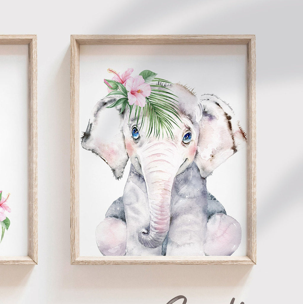 Safari decor girls, pink nursery safari, girls zoo animal art, girls safari wall art, girls zoo nursery, pink elephant, pink gray baby decor
