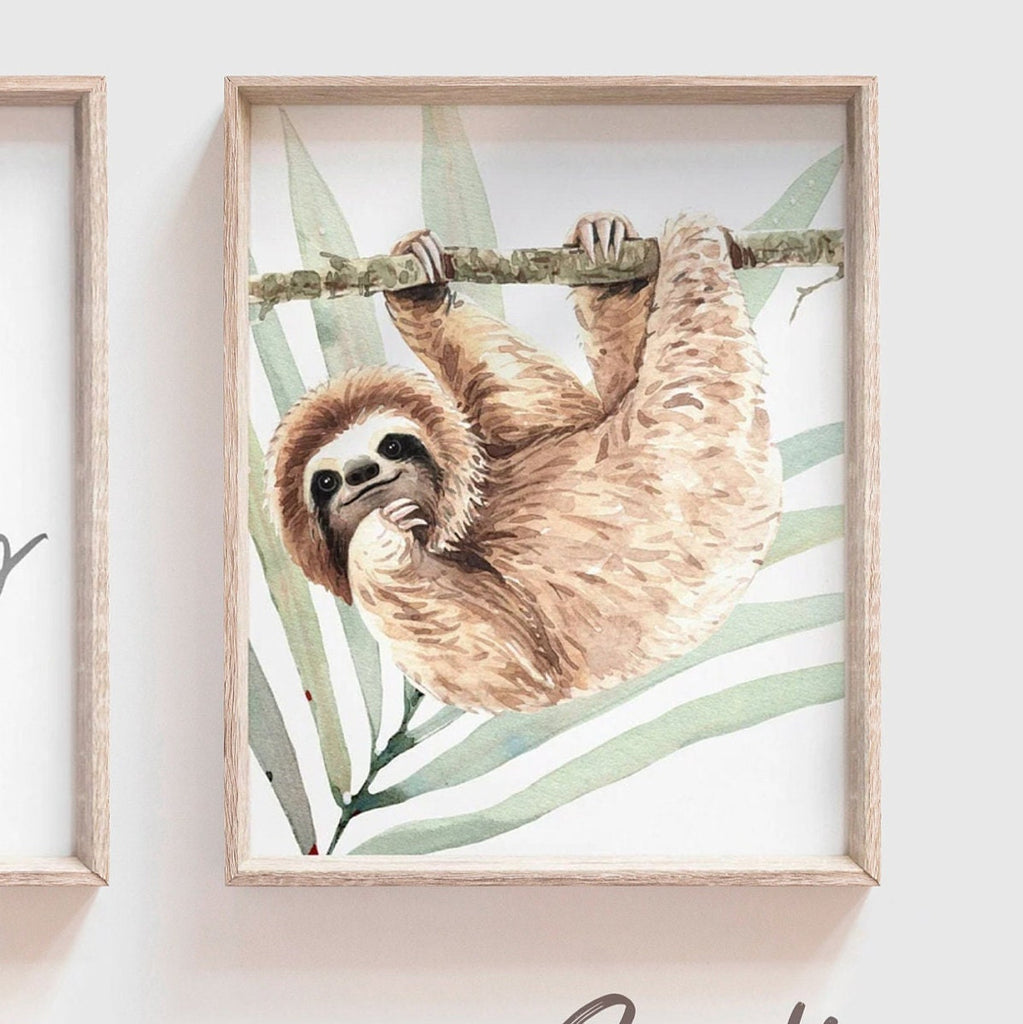 Sloth decor, tropical sloth baby shower, sloth wall art prints for baby, sloth birthday party gift, sloth decorations baby crib, sloth print