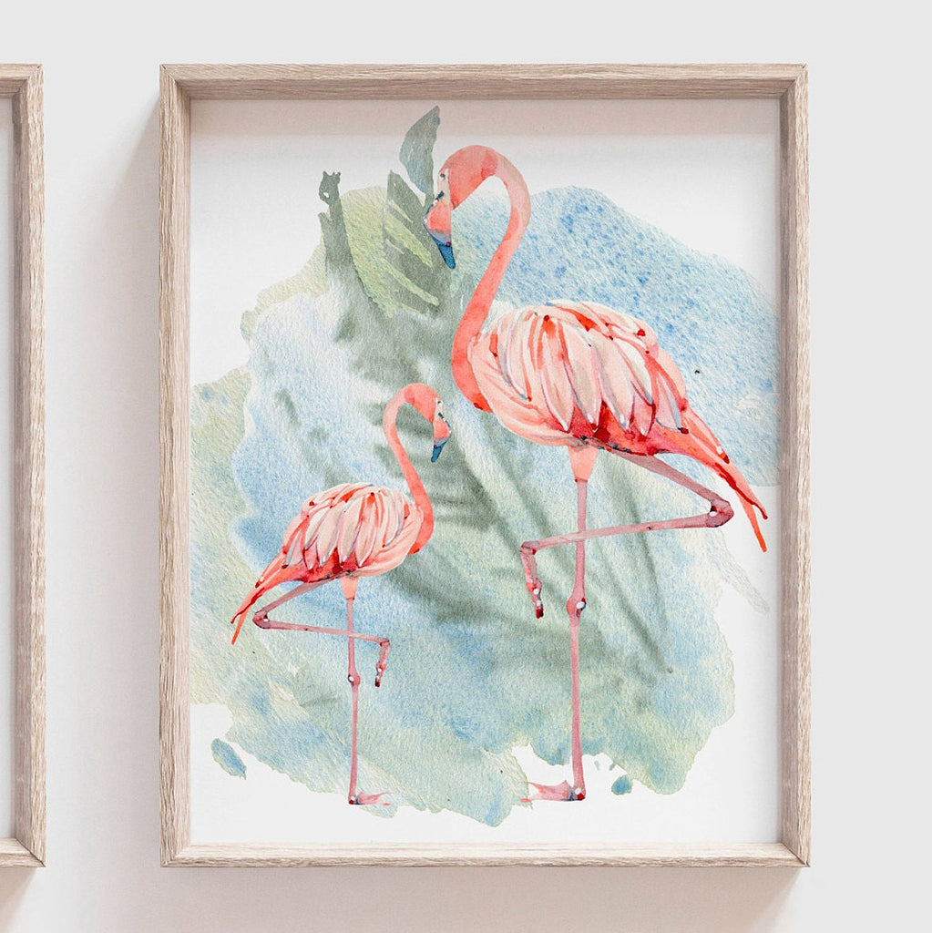 Tropical flamingo nursery, pink green nursery tropical floral, palm leaf tropical theme baby, trendy nursery wall art decor baby girl gift