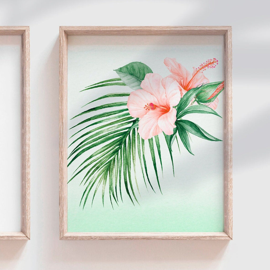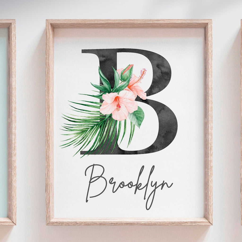 Tropical personalized name baby gift, mint aqua pink green tropical nursery art, baby girl quote flamingo palms, green pink aqua nursery art