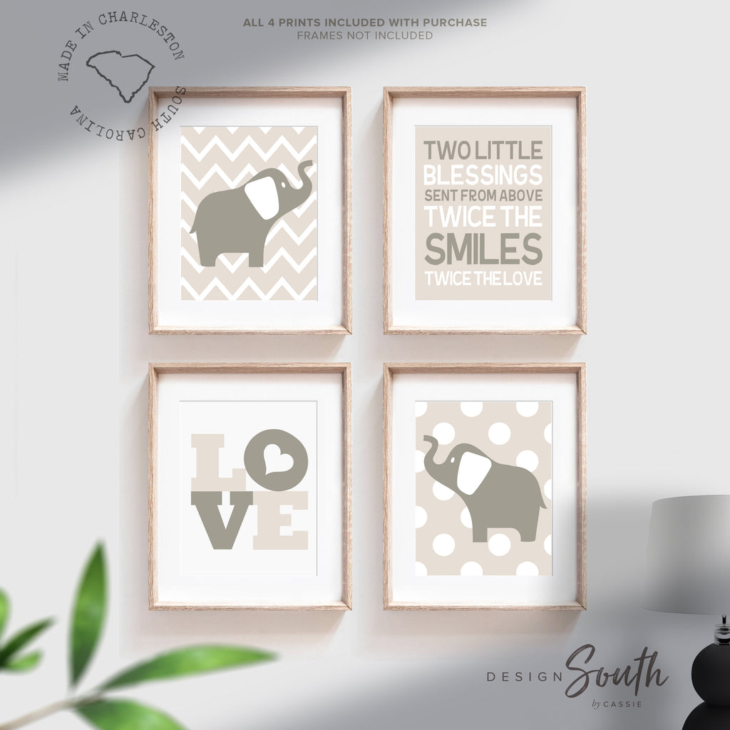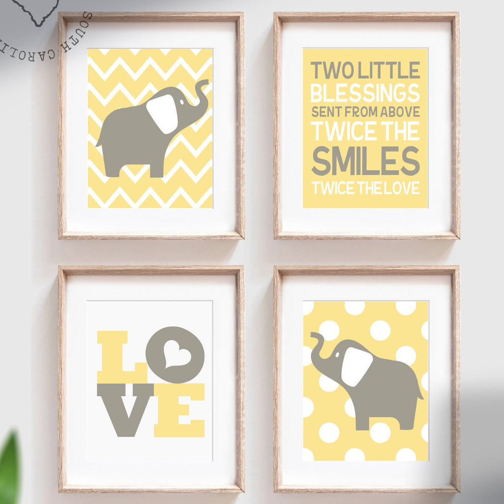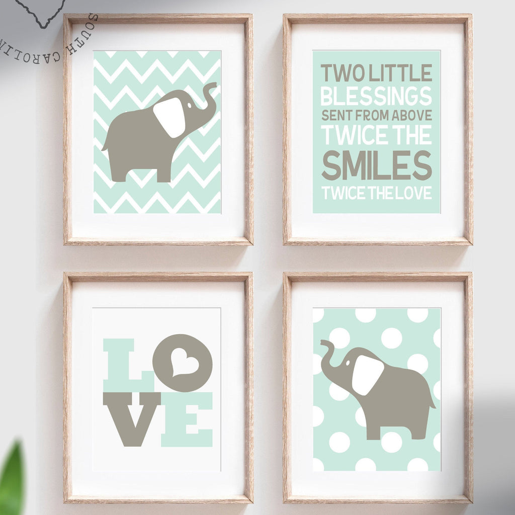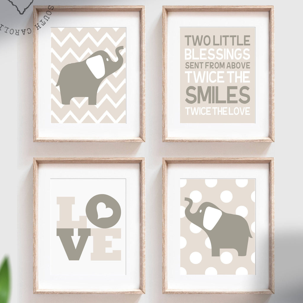 Twin nursery art, twin nursery decor, twin boy girl nursery, elephant twin theme, quote for boy girl twins, twin decor, twin baby wall art