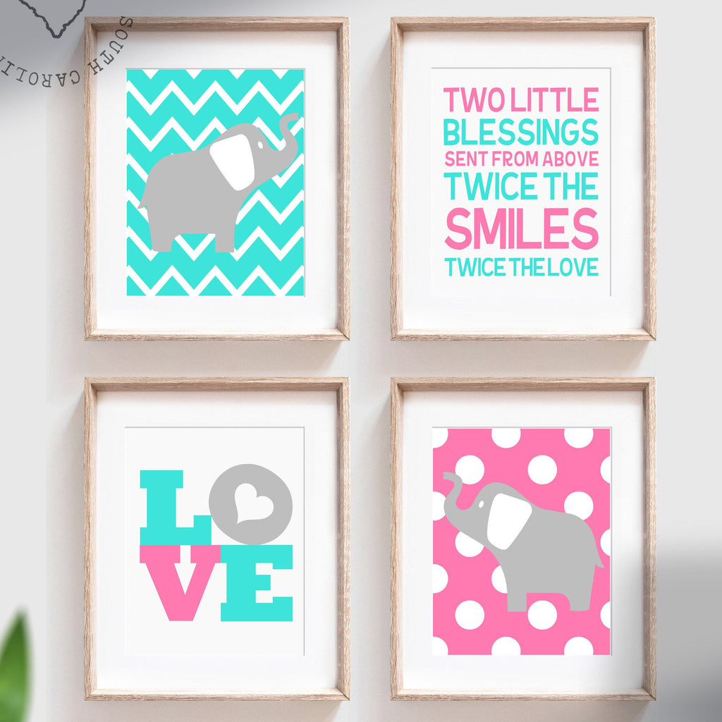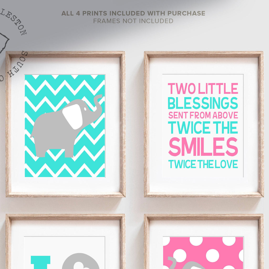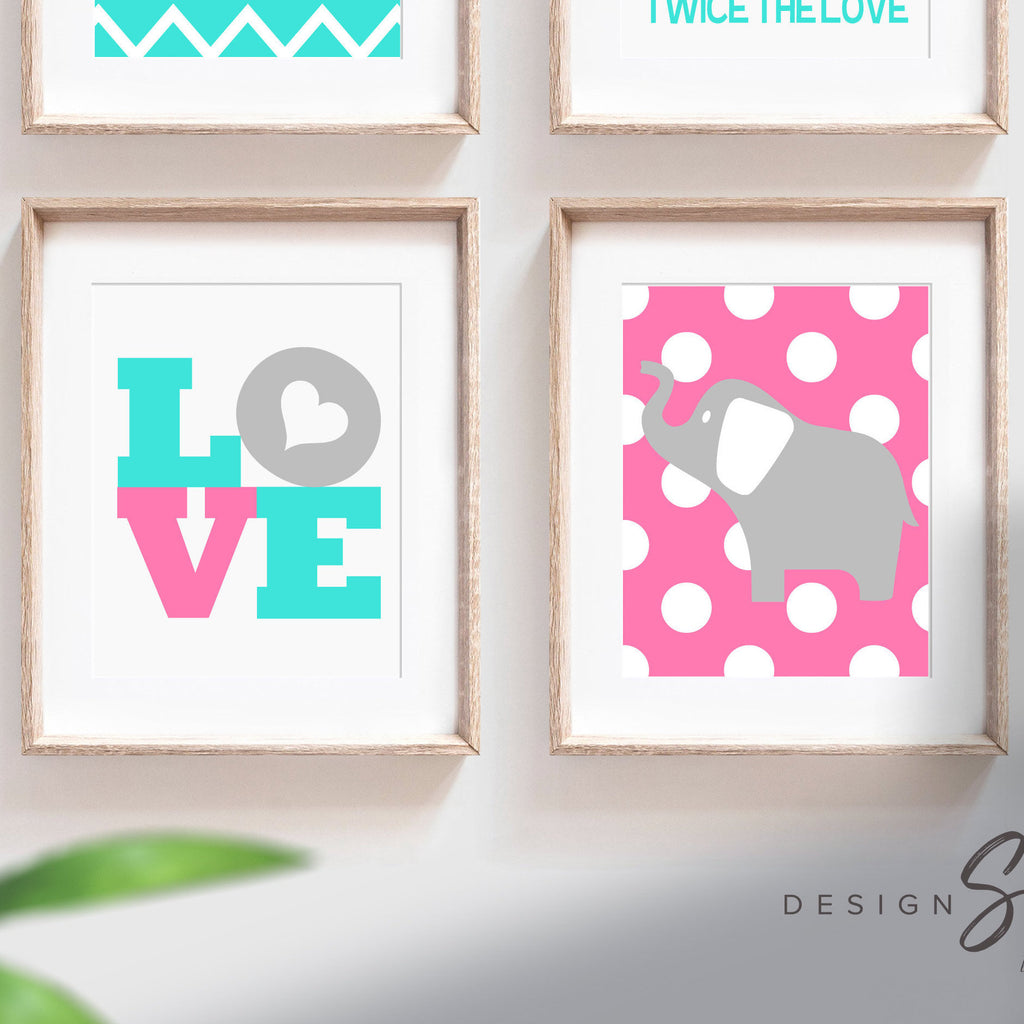 Twin nursery wall art boy/girl, twin nursery decor, boy girl nursery wall art, pink teal twin decor, boy/girl twin decor, twin nursery art