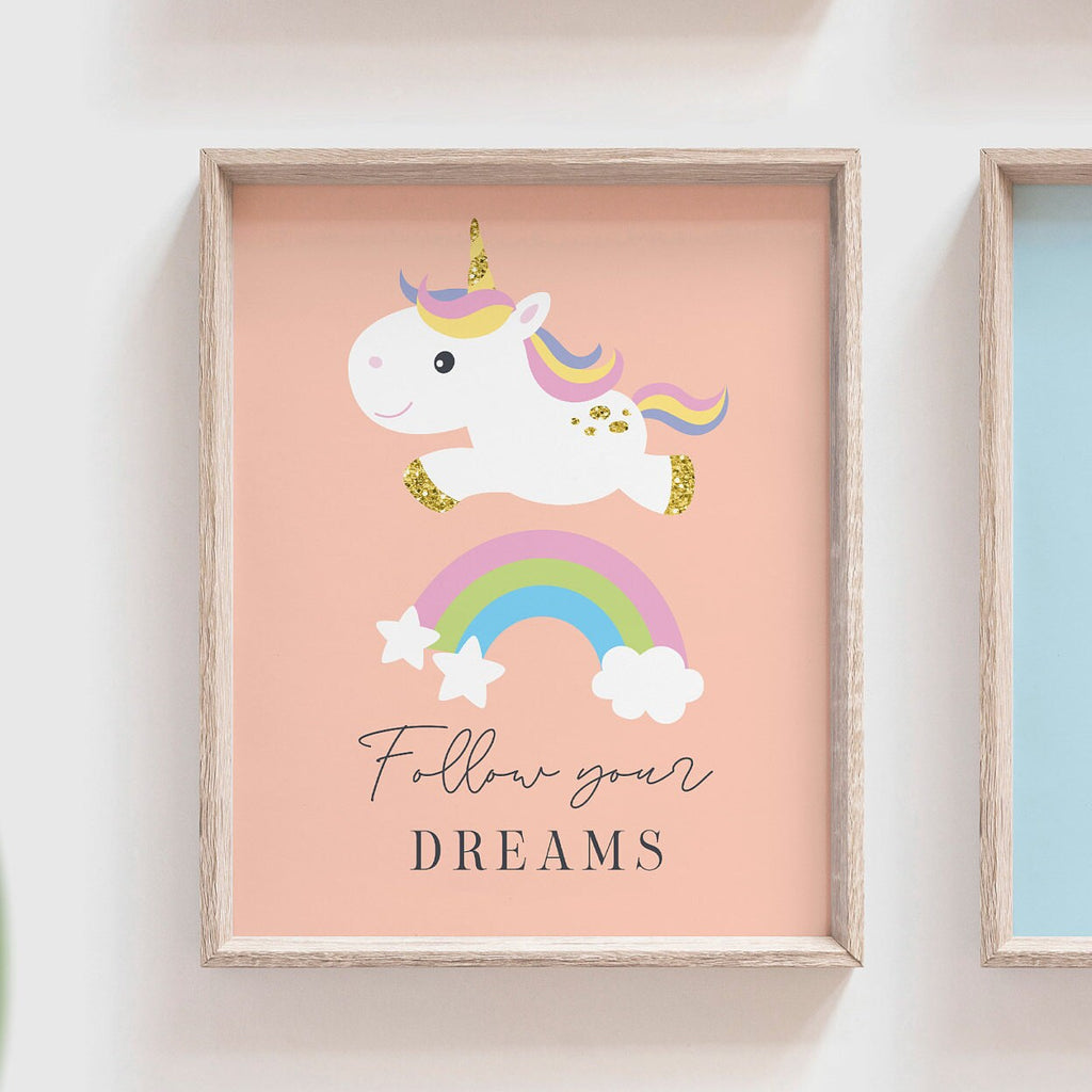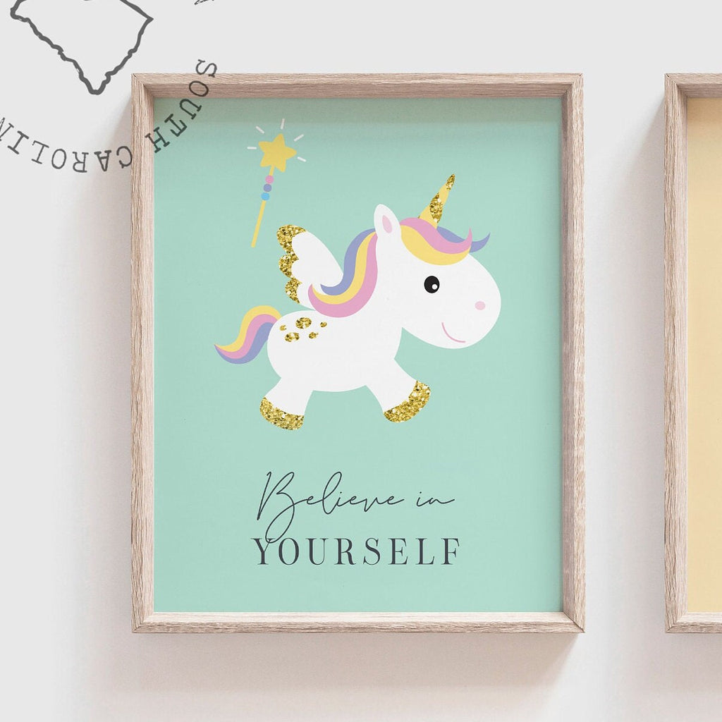 Girls inspirational wall art, playroom decor little girls, pastel nursery art, inspiring children's art prints, unicorn nursery wall decor