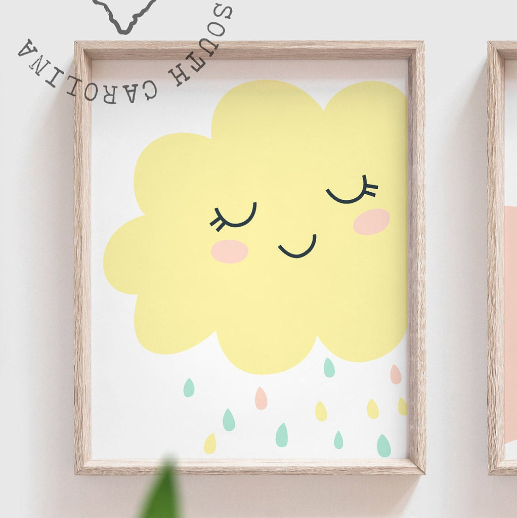 Bright pastel gender neutral nursery art, raincloud nursery art, pastel unisex nursery decor, modern trendy gender neutral nursery wall art