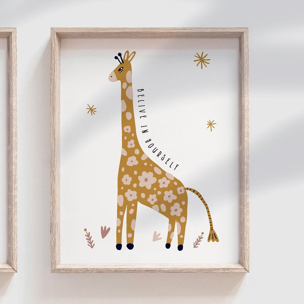 ☛ ☛ ☛ FRAMES ARE NOT INCLUDED ☚ ☚ ☚Thank you for choosing Design South. 🌸I take pride in creating all of my designs. These contemporary safari theme wall art prints will redefine the walls of a child's nursery, playroom or bedroom. Each design is curated with a passion and vision to create inspired spaces for you and your little ones.Ready to order THESE prints for your home decor? It’s EASY! Complete check out and include any color changes you may need in the ‘notes to seller’ section during checkout. After purchase, I will send you a proof for your review and approval before printing. ----------------♥ WHAT YOU WILL RECEIVE ♥-----------------➤ Six UNFRAMED art prints. Product description: Safari animal themed prints in colors: Mica, Mansell and Eden with inspirational quotes reading, "Stay positive. Stand tall. Be wild and free. Believe in yourself. Follow your dreams." Other options are also available in my shop.Colors can be customized. A color change is included in the price. Frames are for decoration purposes and are not included. The prints should be framed behind glass once received. These are not canvas prints. My art is professionally printed on high-quality fine art paper. Each piece is printed as ordered. --------------------♥ HOW TO CHECKOUT ♥--------------------1. Indicate if you would like the prints as shown OR if you would like a color change. If you do not indicate a color change, Design South will assume that you would like the prints in the colors shown above. **NOTE: Please leave a message in the 'notes to seller' section during checkout with your color choices from the chart above if you are requesting colors that are different from this listing. If you do not see the color(s) you want, send me a message! I also accept pictures of nurseries, bedding, and decor for color matching. In the case of a COLOR CHANGE, I will send you a PROOF to your email account. I will use the email account associated with your Etsy account, unless otherwise noted. Please VERIFY the proof, so that I can print and ship your order. Waiting to verify your proof will delay shipping. 2. Choose the size of your prints. Options: 5x7, 8x10, 11x14.---------------------------♥ TIMELINE ♥-----------------------------Timeline: Orders are carefully packaged and typically ready to ship within 3-5 business days. See my shop website for updated turnaround times. If you would like a custom order, visit my shop website and send me a message. Note: Custom orders will require a proof sent to you via email and confirmation regarding the proof for your order to be mailed. **Each day that I do not receive information such as your child's name, or an approval of the proof, it will delay the shipping date. -----------------------♥ TERMS OF USE ♥-------------------------Product cannot be reproduced, resold or distributed. The artwork in this shop is the property of Design South. The artwork offered here is for personal use only.Thanks for choosing Design South! - Cassie DESIGN SOUTH