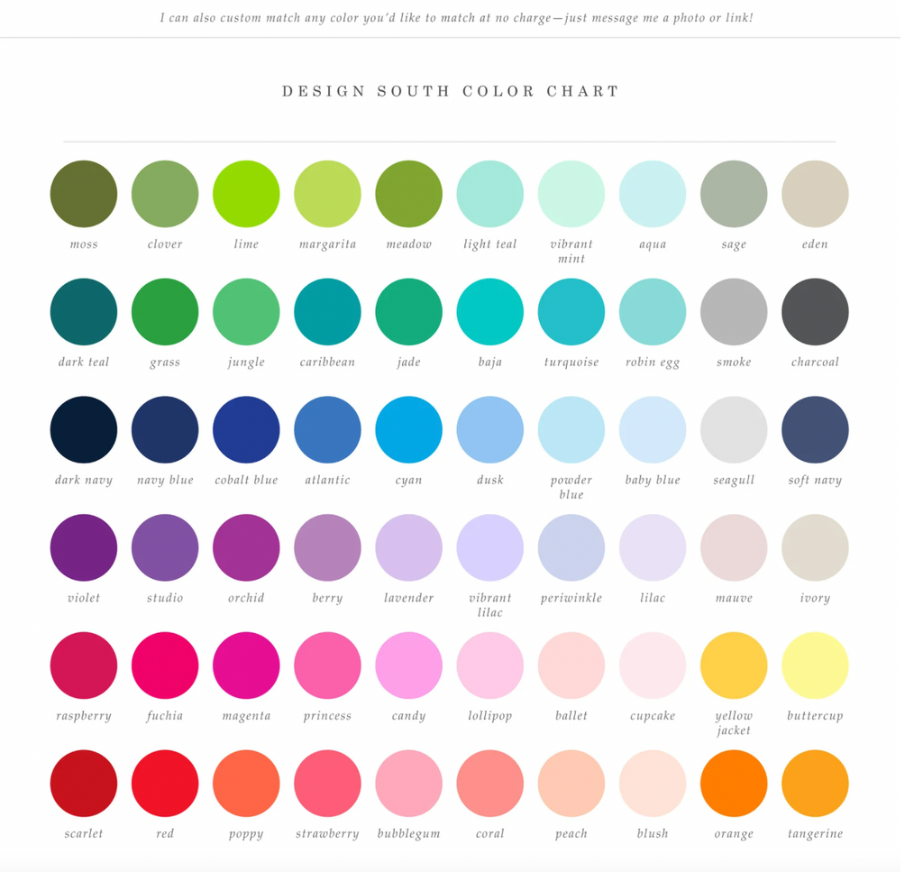 **NOTE: Please leave a message in the 'notes to seller' section during checkout with your color choices from the chart above if you are requesting colors that are different from this listing. If you do not see the color(s) you want, send me a message! I also accept pictures of nurseries, bedding, and decor for color matching.