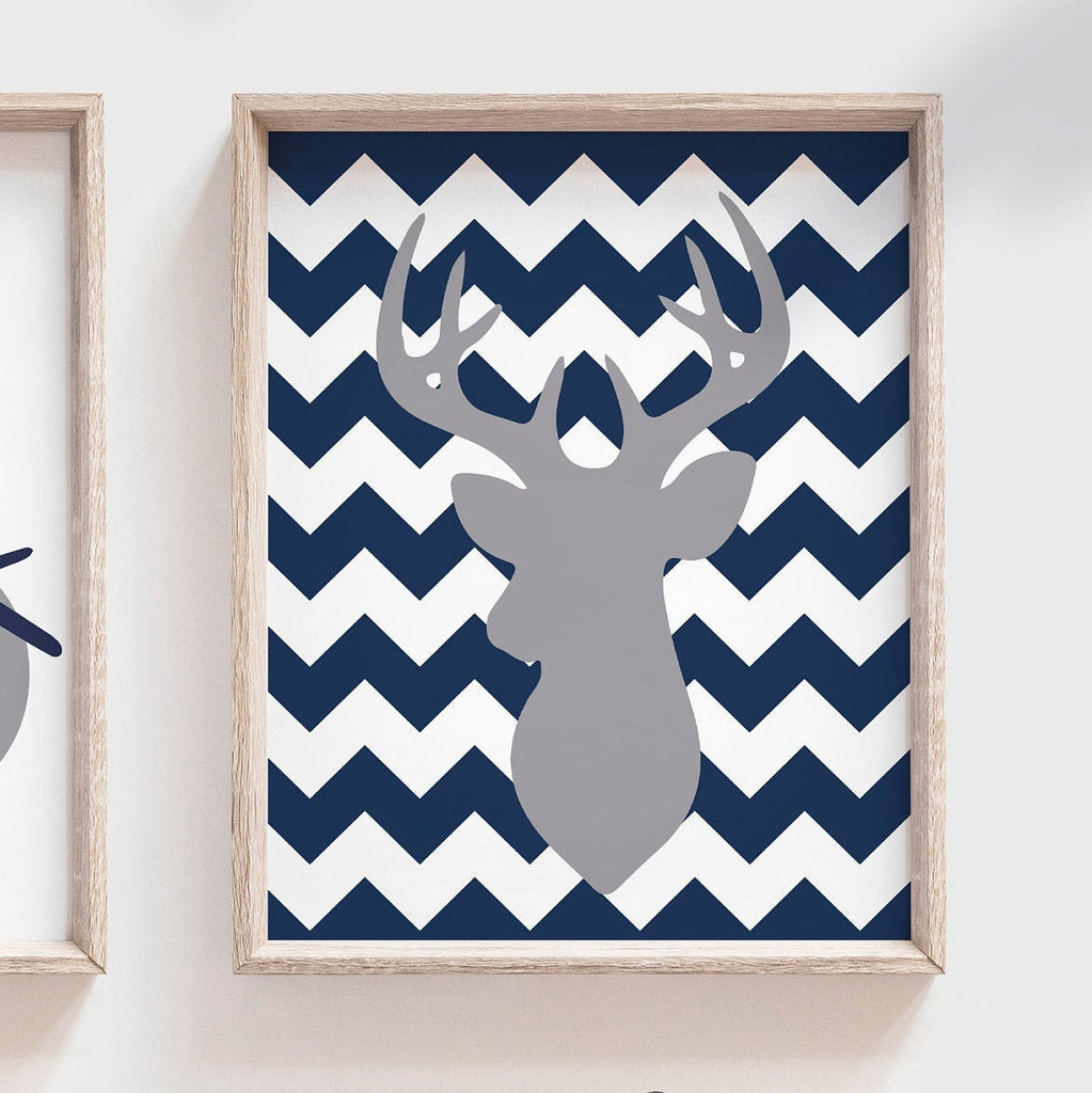 Deer nursery wall art, navy blue and gray deer nursery art for baby boy, woodland deer nursery art, deer wall decor, boy deer, deer pictures