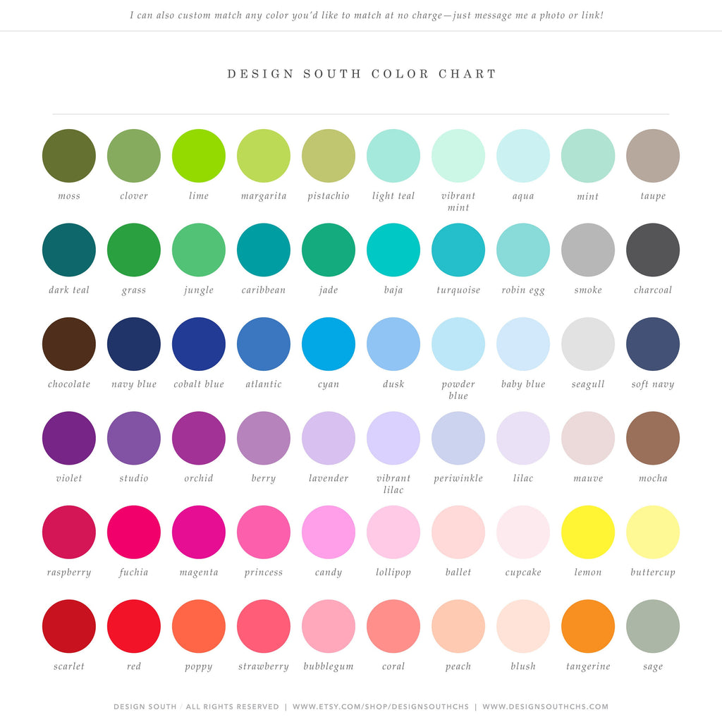 **NOTE: Please leave a message in the 'notes to seller' section during checkout with your color choice from the chart above if you are requesting colors that are different from this listing. If you do not see the color(s) you want, send us a message! I also accept pictures of nurseries, bedding, and decor for color matching.