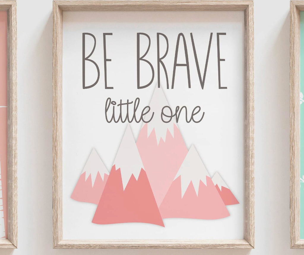 Product description: Tribal fox designs with birch tree pattern backgrounds and matching print reading "Be Brave Little One." Other color options available.