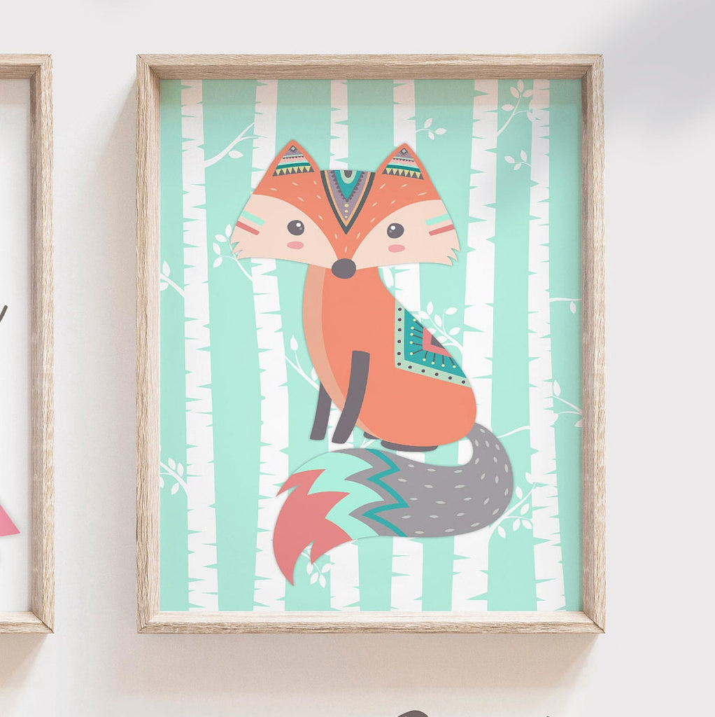 Thank you for choosing Design South. I take pride in creating custom designs for your home. These tribal fox wall prints are perfect for a girl nursery, playroom or bedroom.