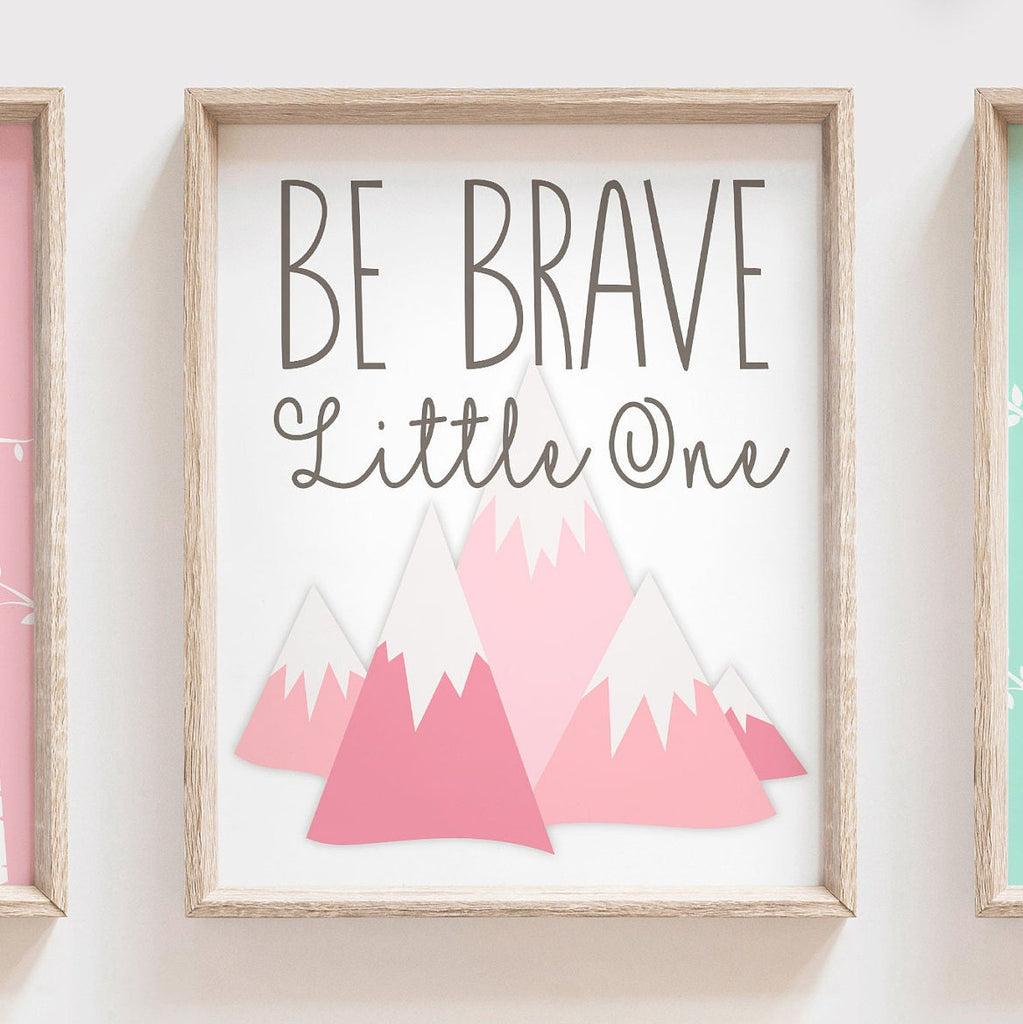 Girl fox pink woodland nursery, baby girl woodland decor, girl fox nursery wall art prints, be brave little one fox theme, little girl room